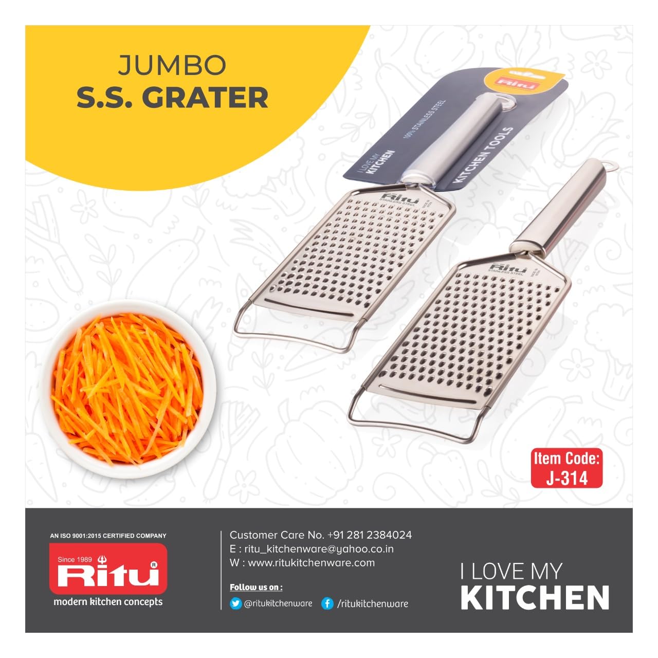 Stainless Steel Build – Crafted from premium quality stainless steel, the RITU cheese grater is built to last. It resists rust, corrosion, and wear, making it a reliable tool for everyday kitchen use. Whether you’re grating cheese, carrots, ginger, or slicing vegetables and fruits, this durable grater delivers consistent results while maintaining hygiene and sharpness through repeated use.