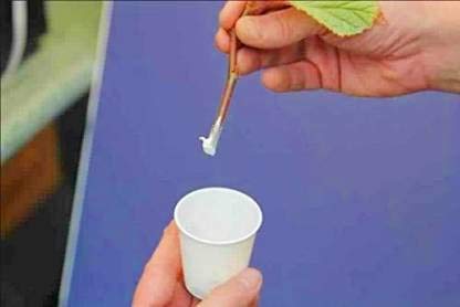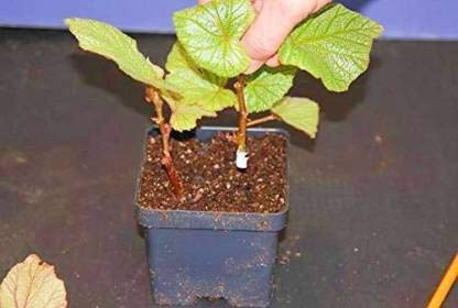 Do not dip the cutting directly into the rooting hormone container. Don’t apply the powder any higher than the planting depth. Shake the excess powder off by lightly tapping the cutting against the edge of the container. Make a hole in the potting medium with a pencil or similar tool. Make sure the planting hole is wide enough that the rooting hormone is not rubbed off as you sink the cutting into the soil.
