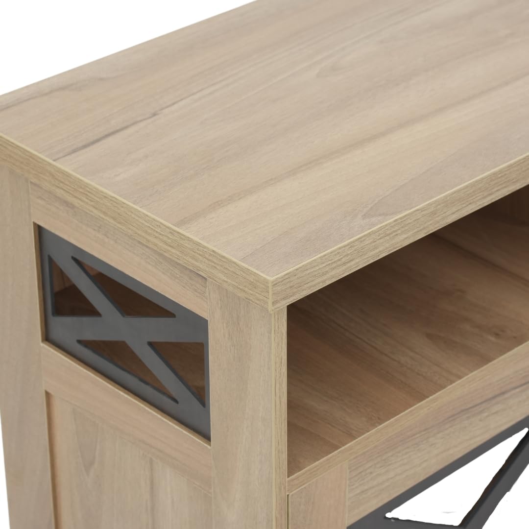Organised Storage with Hidden Drawer: the tv stand consists of a smooth-glide drawer with telescopic channels that provide a space for remotes, chargers, and accessories. This compartment helps reduce clutter, working efficiently as part of a practical tv unit with storage cabinet.