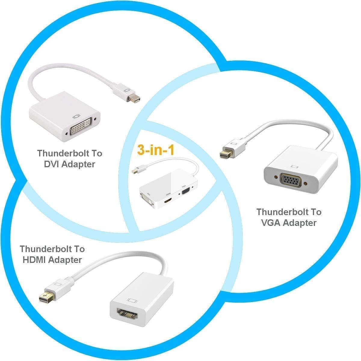 🟠Lightweight and portable adapter for connecting a Mini DisplayPort (Thunderbolt port) to HDMI, monitor or projector with HDMI/DVI/VGA cable.