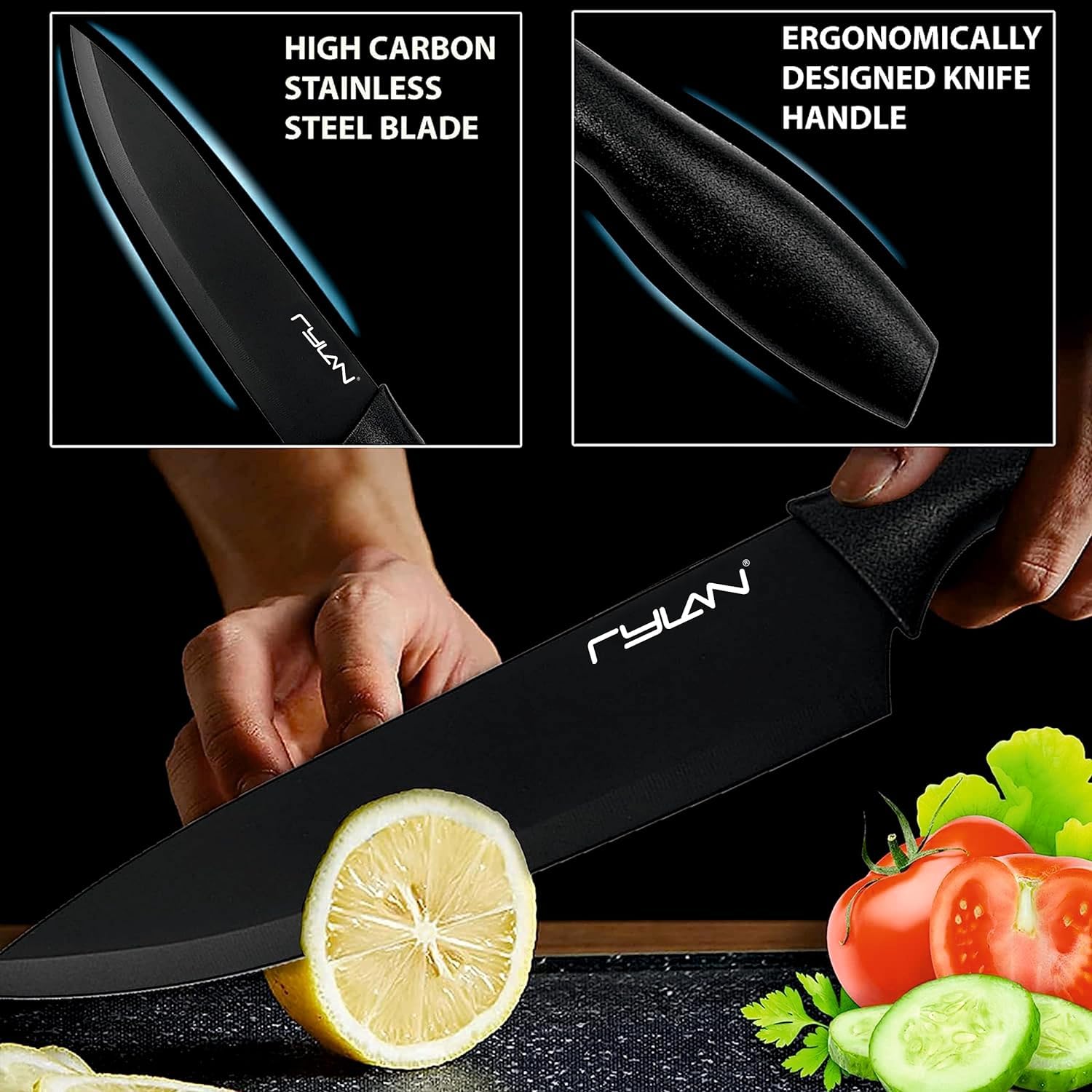 The durable non-stick black colour coated blades of kitchen knives makes it a breeze to slice and clean.