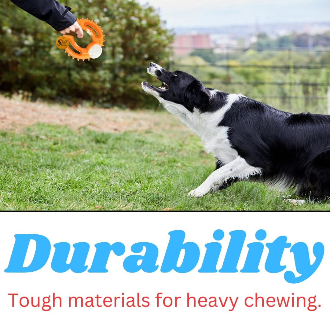 Durable Material for Long Play: Designed to last, this rubber and hard plastic ring toy stands up to chewing and rough play, ensuring your dog stays entertained for a long time.