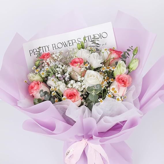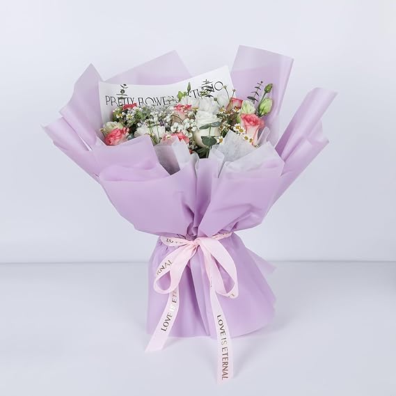 PREMIUM QUALITY: Light purple wrapping paper made from high-quality material, perfect for creating elegant flower bouquet presentations and gift wrapping