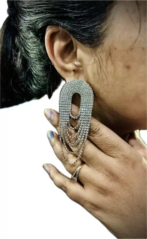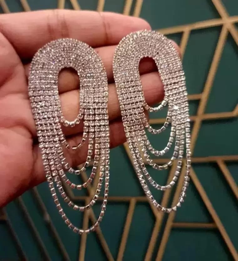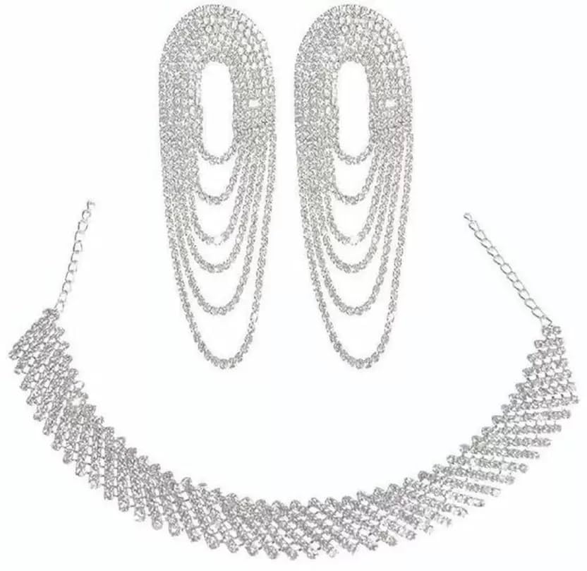 Samridhi DC Silver Rhinestone Jewellery Set with Adjustable Necklace and Earrings for Women