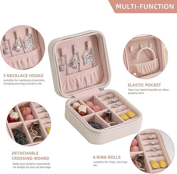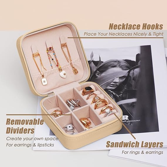 Simple & Practical: The zipper design make the jewelry box easy to open during travel, Two removable dividers to meet different needs;allows you wear your favorite pieces at any time.