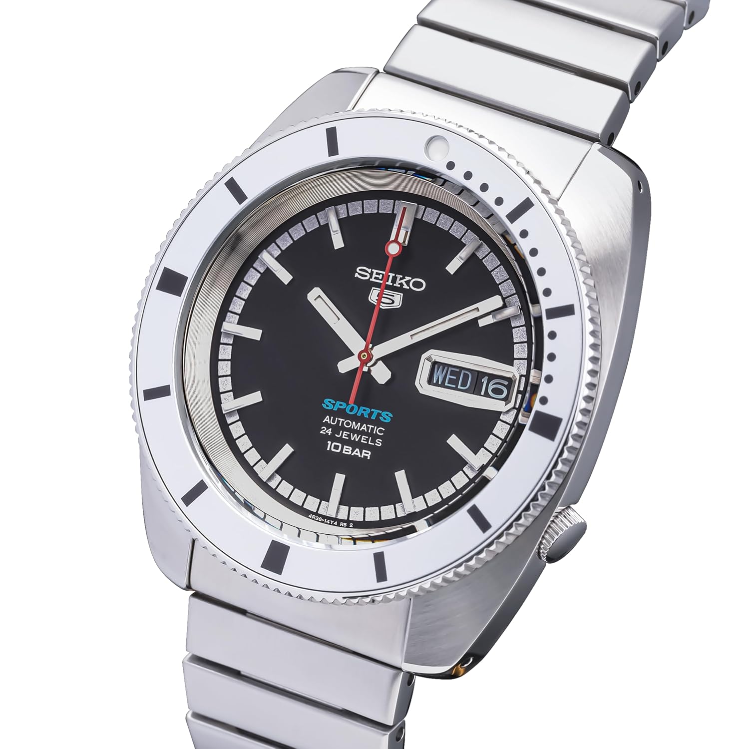 This is the second iteration of the original Seiko 5 Sports model, which was released in June 1968. With this ‘re-creation’, Seiko offers two colours for the dials that were popular at the time of the original release (see also reference SRPL03K1). The case has been recreated as faithfully as possible to achieve a size and shape that is almost identical to the original model. At the same time, the watch was modernised and the movement improved by inserting a 4R36 into the case. Details such as the shape of the horns and the size of the crown have been updated to reflect the need for practicality and comfort. The model adopts a robust stainless steel bracelet with a similar design to the original bracelet from the first collection. *Readoption’ of the bracelet of the Tribute model released in 2023 (SRPK17). The additional calfskin strap with racing-style perforations further enhances the retro look of the model.