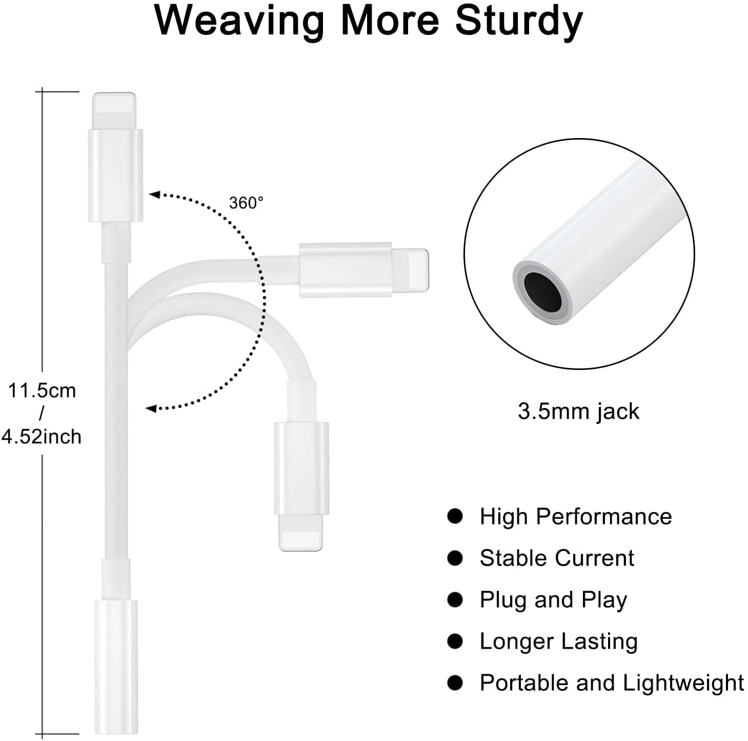 SENBUN Lightining to 3.5mm Connector for Apple Devices, Including iPhone 14/13 Mini/13/13 Pro/13 Pro Max etc, for Music and Audio||Connect with Bluetooth