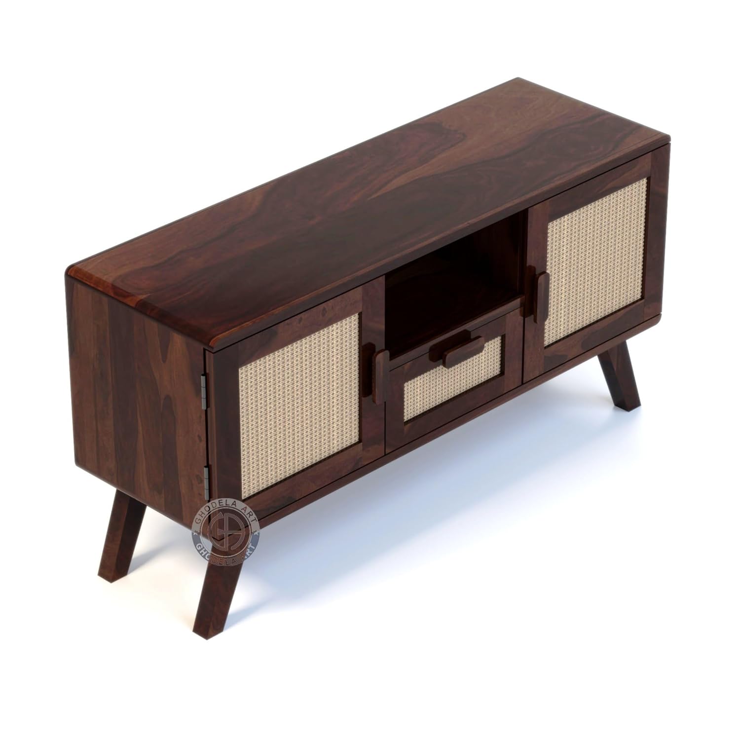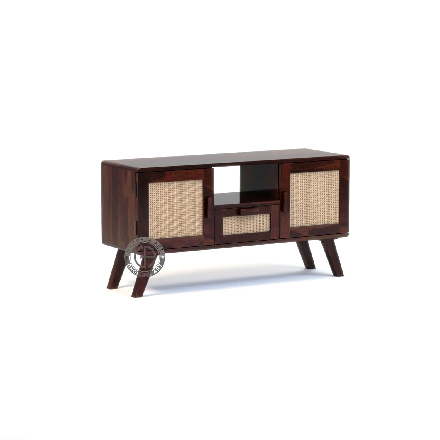 Sheesham Wood Cane TV Cabinet with 2 Drawer and 2 Door Storage for Living Room Wooden Rattan Tv Entertainment Unit for Bedroom (Walnut Finish (1 Drawer & 2 Door), 116.8 x 38.1 x 61)
