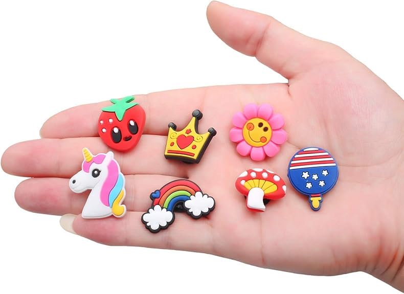10PCS Random Cartoon Clog Charms – Add personality to your croc slippers with this fun set of 10 shoe charms for men , randomly selected from 30 unique designs. Perfect for DIY enthusiasts, these colorful charms for croc let you customize your footwear, show off your style, or add a playful touch to any pair of shoes. Enhance Your Style – Designed specifically for clogs, these rubber croc sticker button turn ordinary footwear into a fun, personalized statement. Simply snap them on or off to mix, match, and create endless DIY combinations that reflect your personality. Rich & Trendy Designs – This set of 10 random croc charms for women adds a pop of color and style to your footwear. Featuring fashionable elements, they’re perfect for making a statement. Mix and match to create endless personalized looks that show off your unique personality. Bring Fashion Anywhere – These playful croc accessories for women add fun and flair to your everyday footwear. Perfect for home, casual outings, or themed parties, they bring a touch of style and whimsy wherever you go. Premium & Durable – Made from high-quality rubber, these croc buttons charms are built to last through daily wear and tear. The secure snap-on design keeps them firmly in place, so you can walk with confidence while enjoying long-lasting style and fun personalization.
