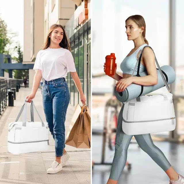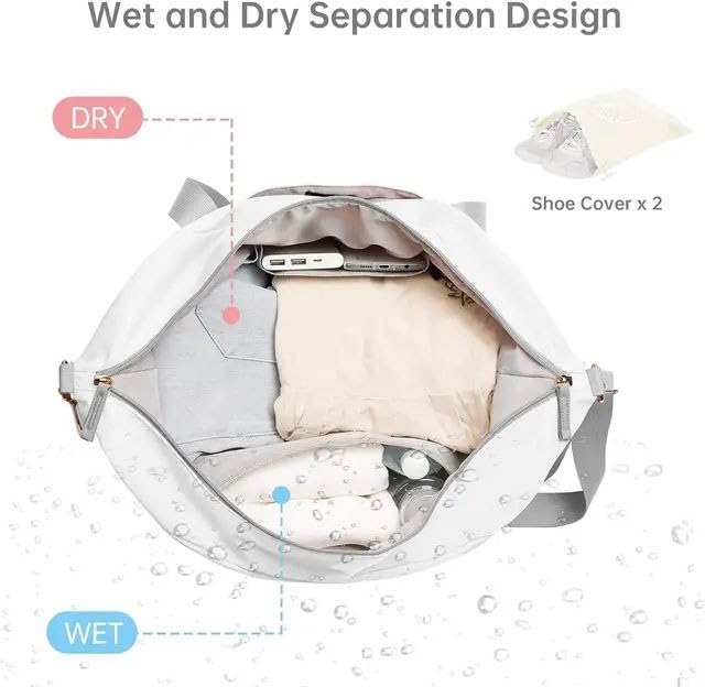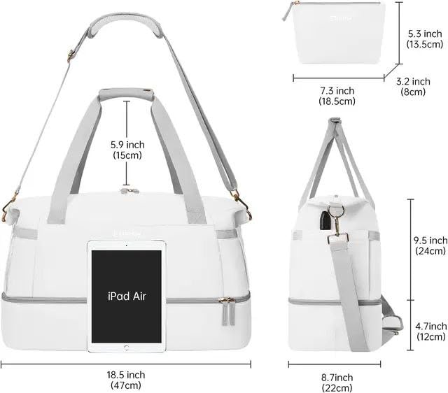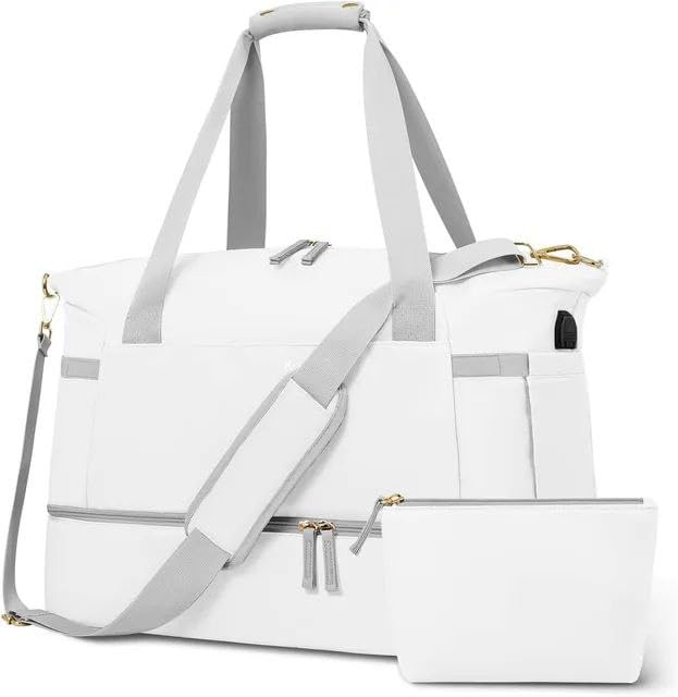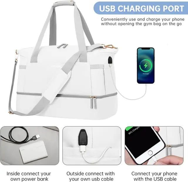 SHREESHANN Travel Duffel Bag with Wet Pocket & USB Charging Port {White}!