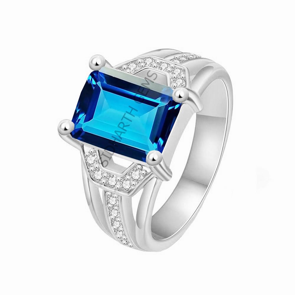 SIDHARTH GEMS 7.25 Ratti 6.00 Carat Blue topaz ring natural topaz ring original certified blue topaz stone adjustable Silver plated birthstone ring