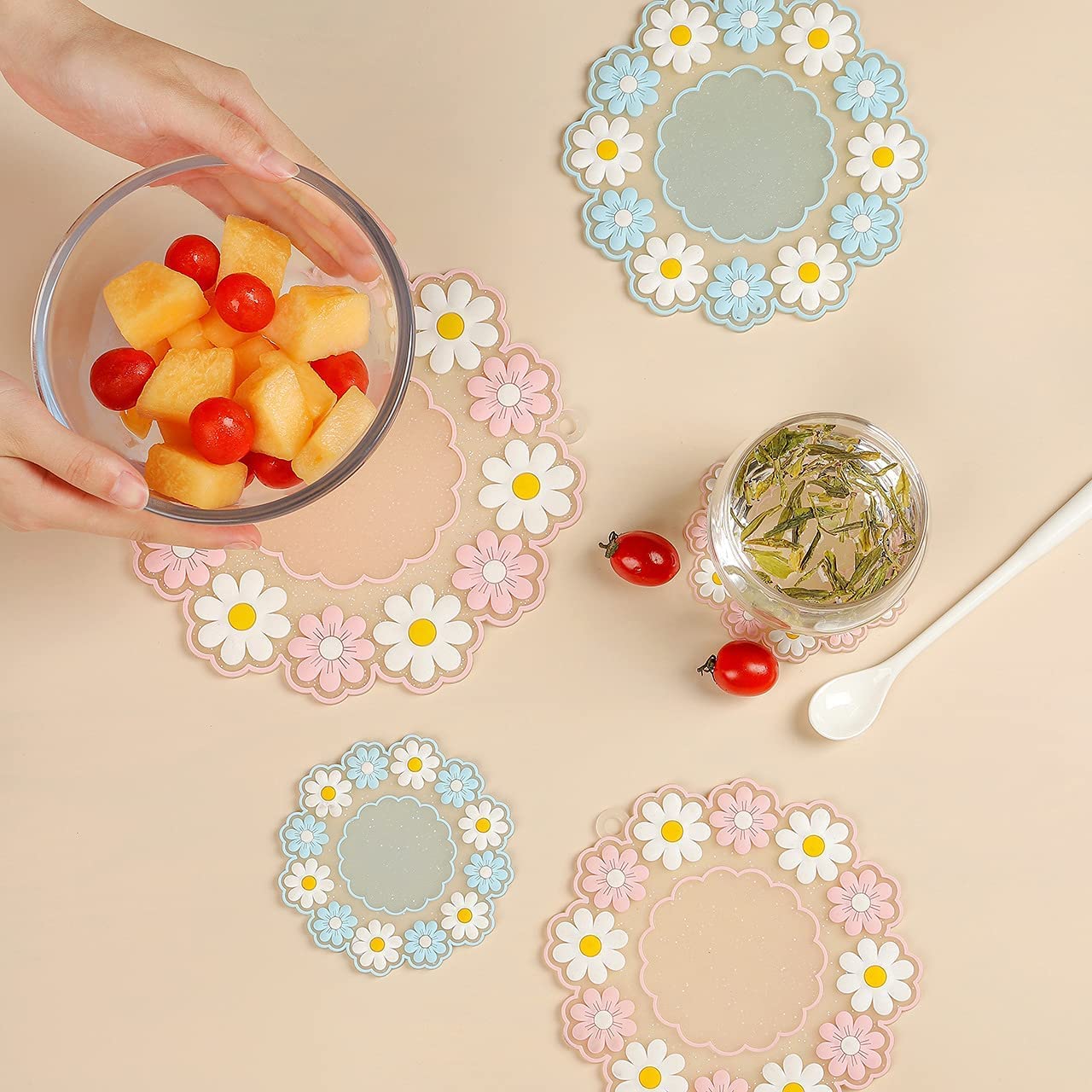 Versatility in Use: Silicone trivet mats are versatile and can be used for various kitchen tasks. Apart from serving as heat-resistant pads, they can function as pot holders, jar openers, or even as a stable base for mixing bowls or cutting boards. Their multifunctional design makes them a valuable kitchen tool. This set of 3 round, daisy flower silicone trivets for hot pots are not just functional but also add a touch of elegance to your dining table.