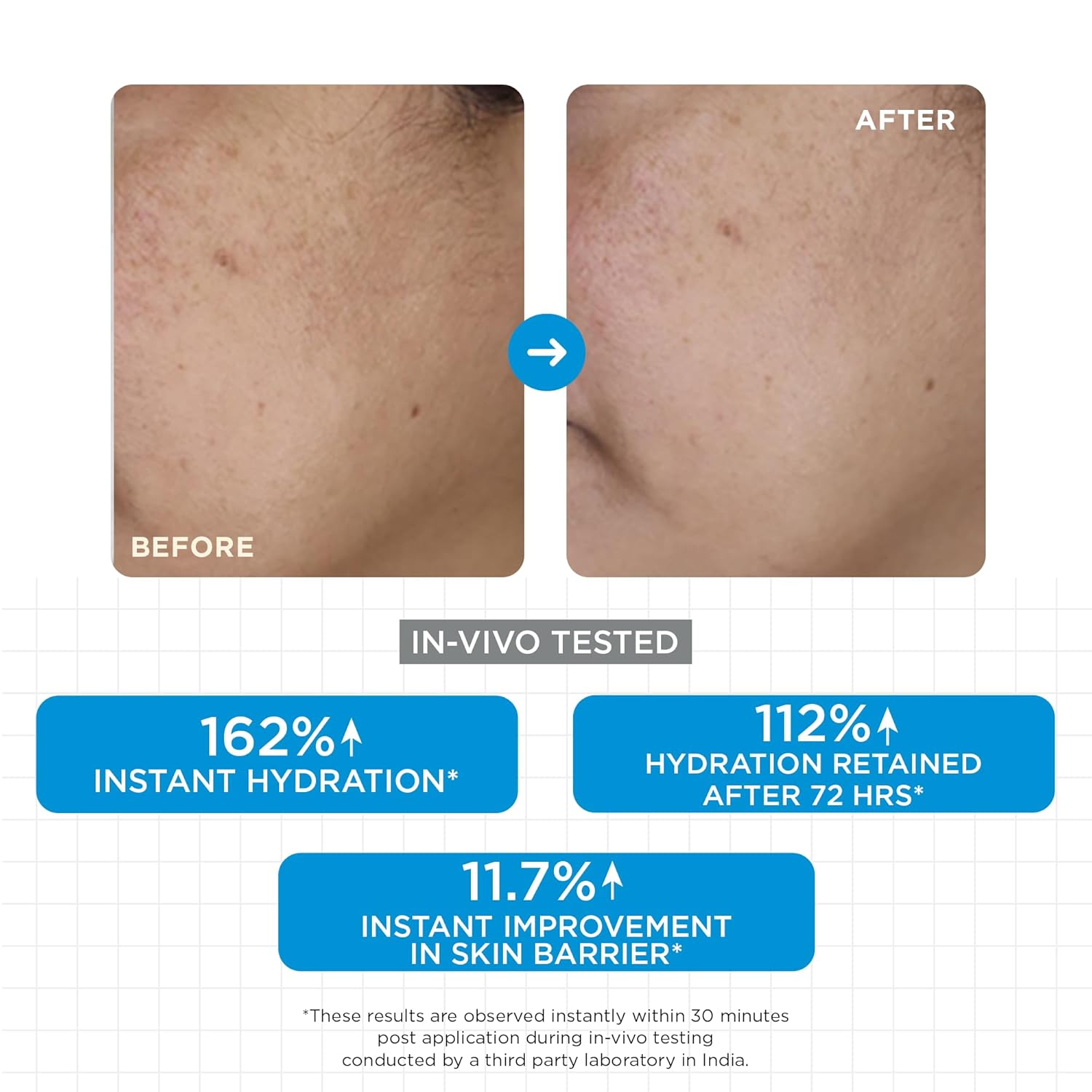 +162% INSTANT HYDRATION: Clinically proven surge in hydration levels for immediate relief from dryness and tightness.