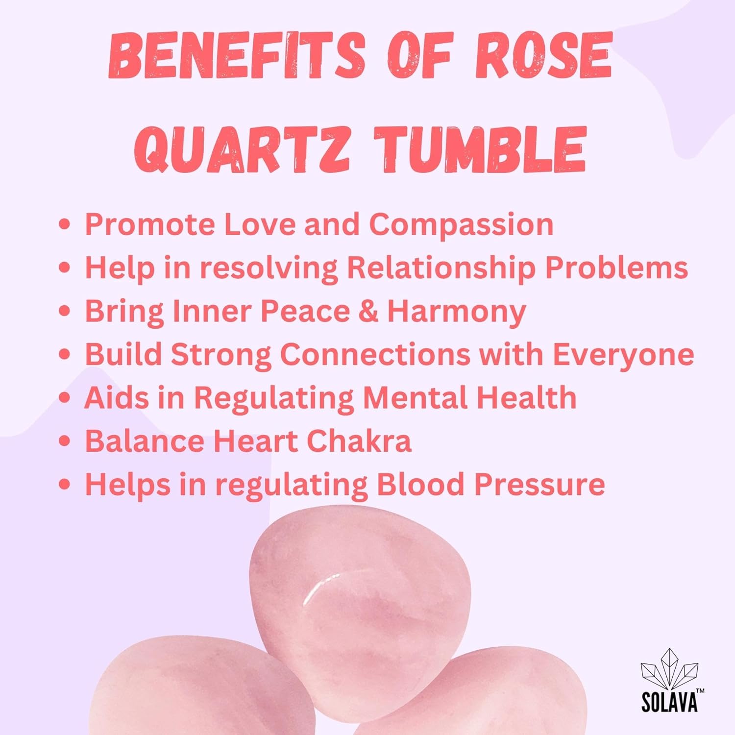 Usage of Rose Quartz Tumble – This love crystal agate stone builds strong connections, resolves relationship problems, promotes self-love & confidence, and removes negative thoughts.