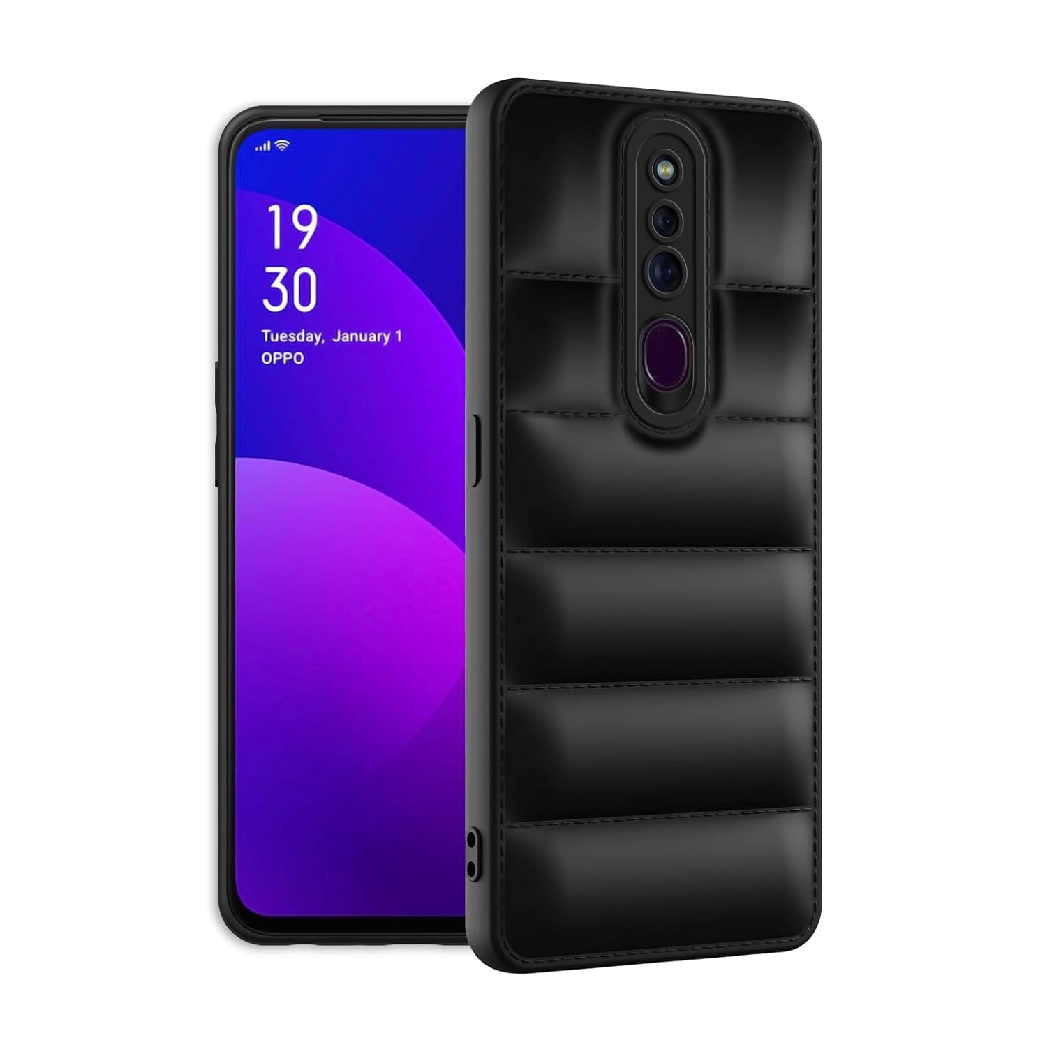 Solimo Rubber Puffer Case Camera Protection Soft Back Cover for Oppo F11 Pro-Black