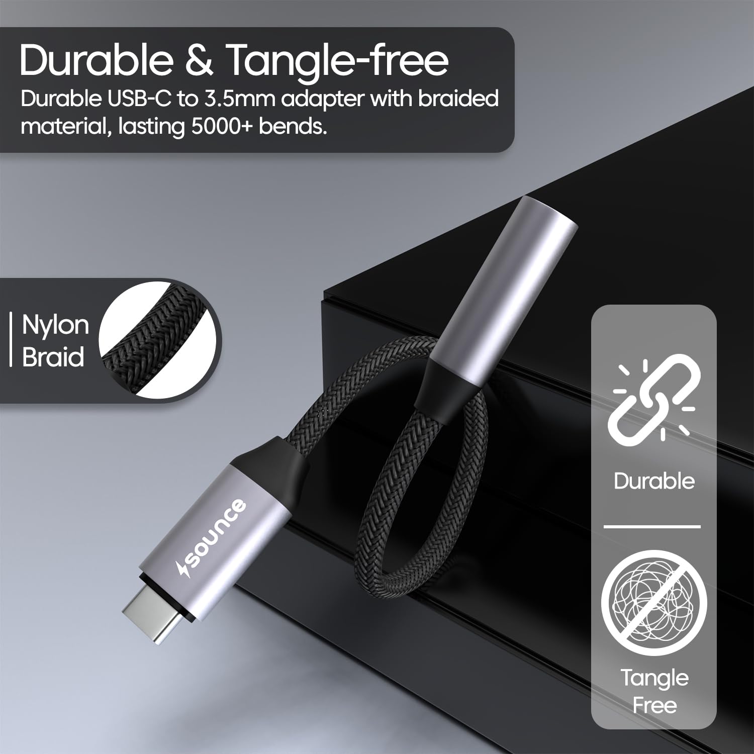 Sounce Type C to 3.5mm Portable Audio Aux Adapter, Connector, Built-in DAC, Braided Cable, Compatible with iPhone 16 Series /15 Series, Galaxy S25/S24 Ultra/S24 & Other Type C Phones