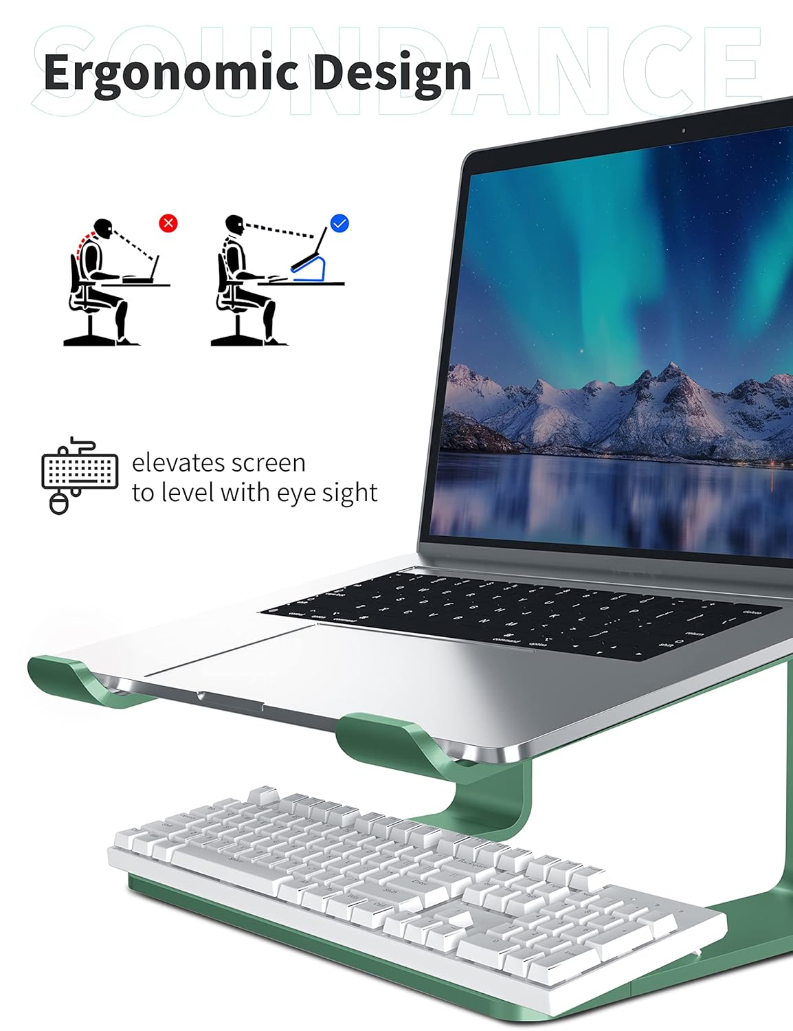 SOUNDANCE Laptop Stand, Aluminum Computer Riser, Ergonomic Laptops Elevator for Desk, Metal Holder Compatible with 10 to 15.6 Inches Notebook Computer, Green