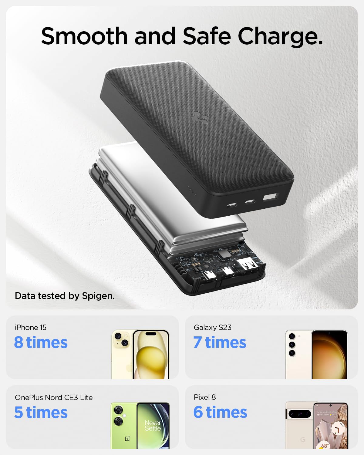 30000mAh of Robust Power: With 30000mAh at your disposal, power up your iPhone 15 For 8 extra charges and your OnePlus Nord CE3 Lite For 5 extra charges.