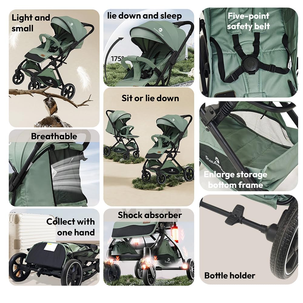 🛡️ 5-Point Safety Harness for Maximum Security: Equipped with a strong 5-point safety belt to keep your baby secure while strolling. Durable frame and premium fabric ensure long-lasting use.