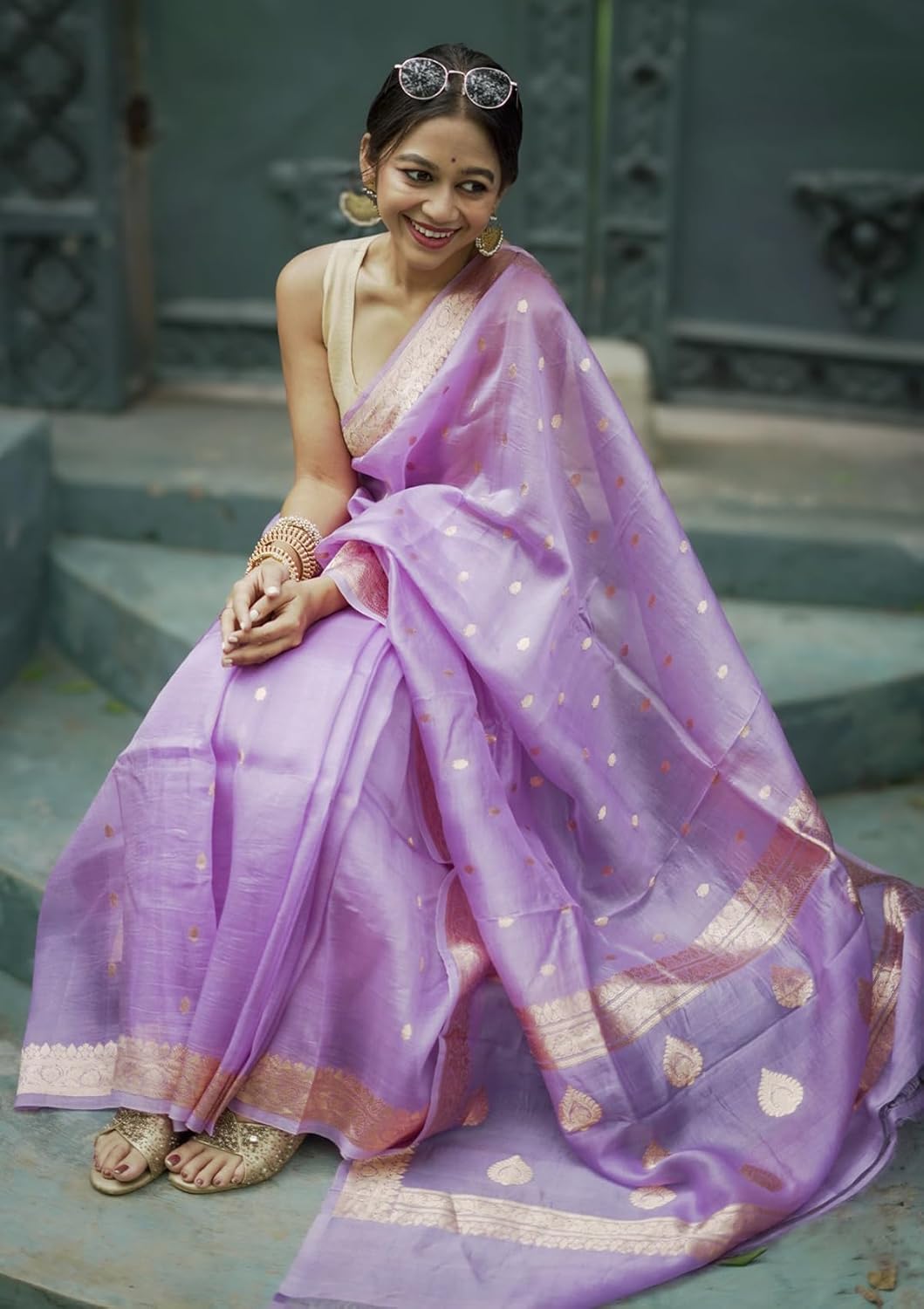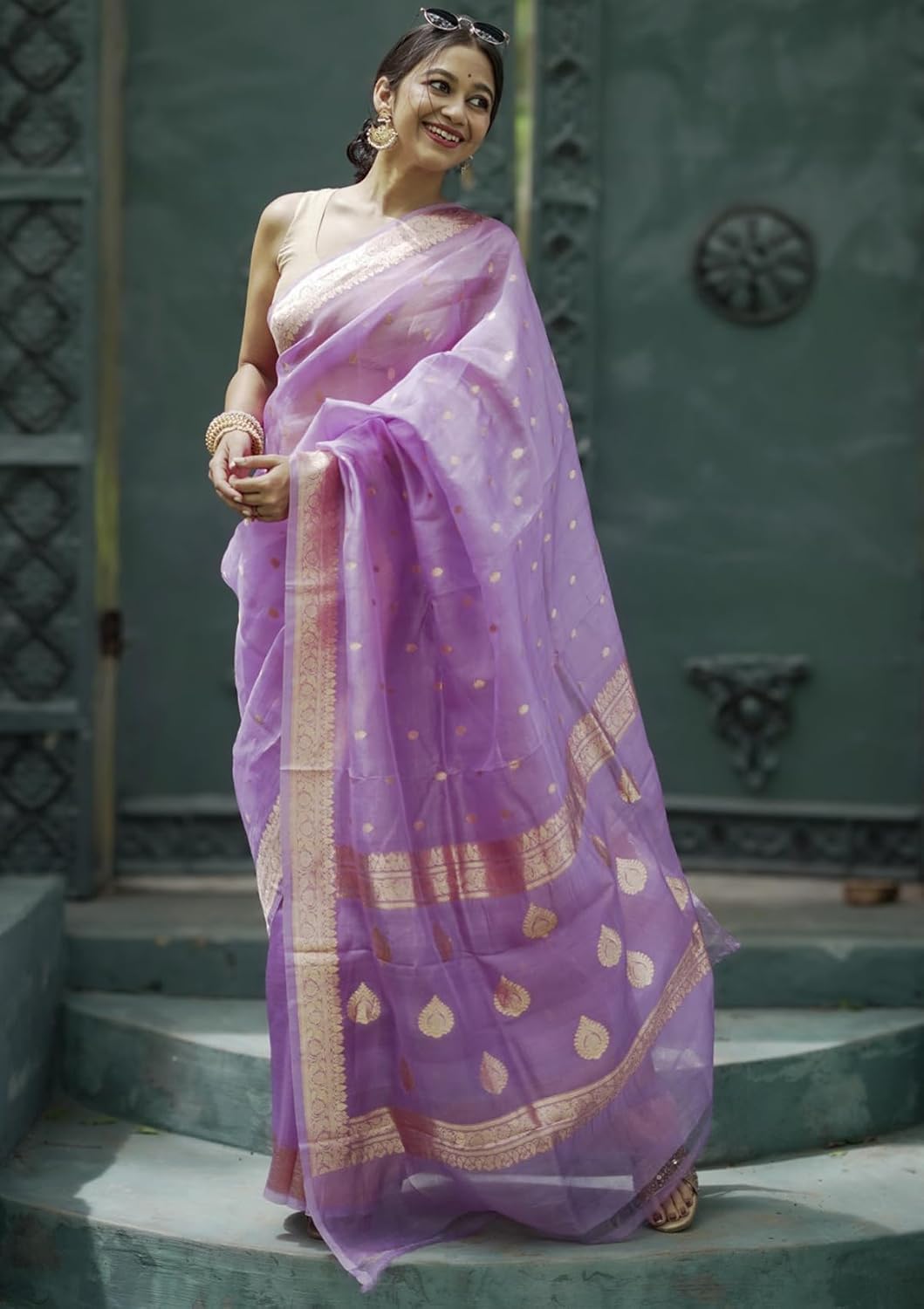 Women’s Lavander Banarasi Kanchipuram Art Silk Saree for Women – Traditional Wedding & Party Saree with Blouse Piece – Ethnic Indian Silk Saree