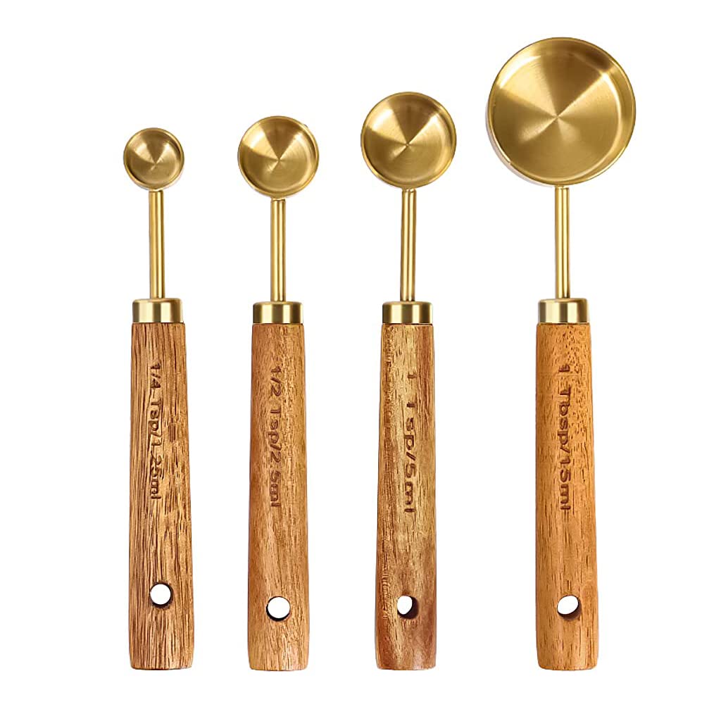 NATURAL WOOD HANDLE:The handle of measuring cups and spoons set is made of log wooden material, which is grip comfortable and durable; and the interface adopts metal material, which is stable and strong, not easy to fall off. As non-stick stainless steel measuring spoon,very easy to clean.