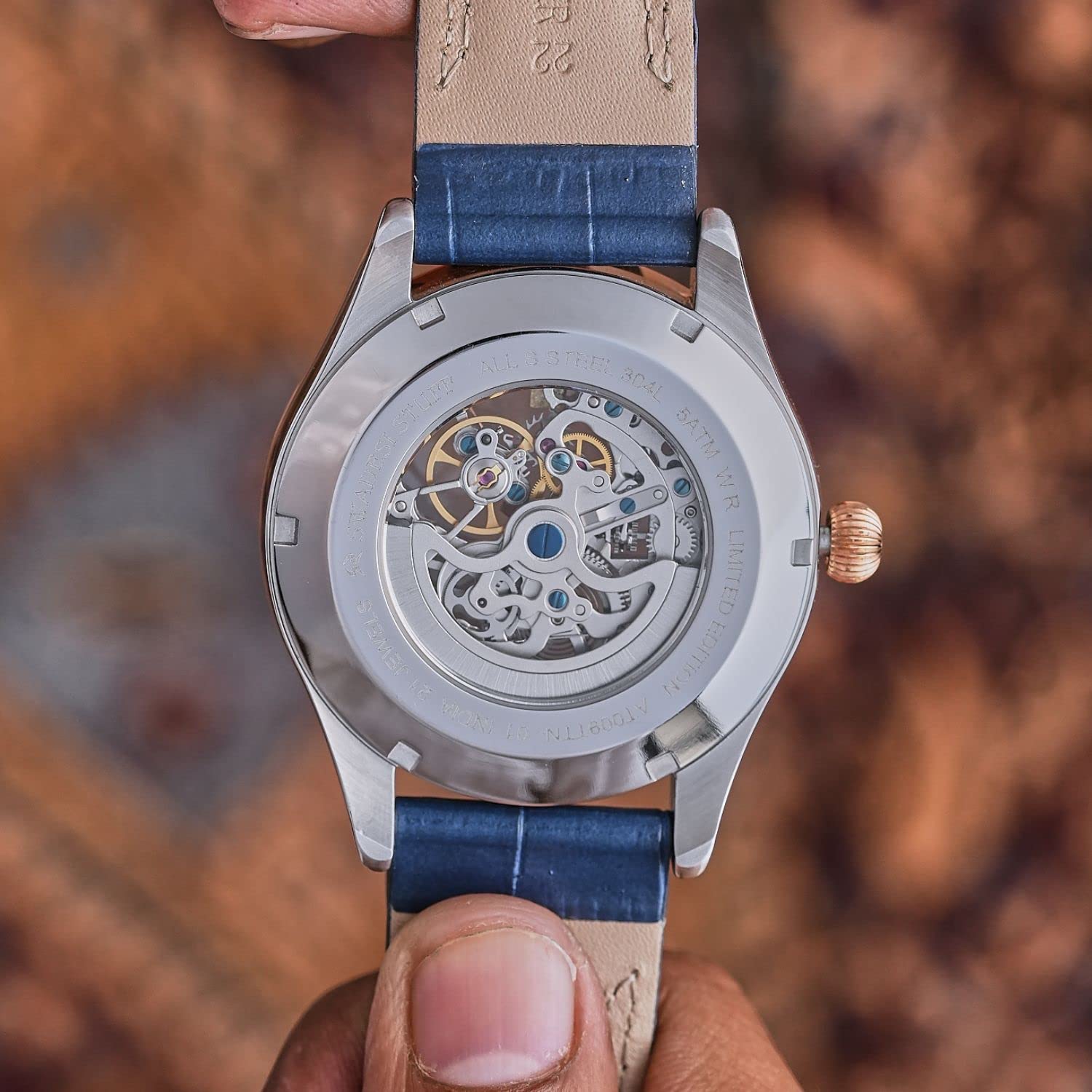 The watch’s stunning design features a skeleton dial made of high-quality 304L stainless steel, which adds to its premium look and feel. The dial’s intricate design allows you to see the inner workings of the watch, including the gears and the movement. The watch is held in place by a pair of high-quality genuine leather straps, which are comfortable and stylish, and add to the overall aesthetics of the timepiece.