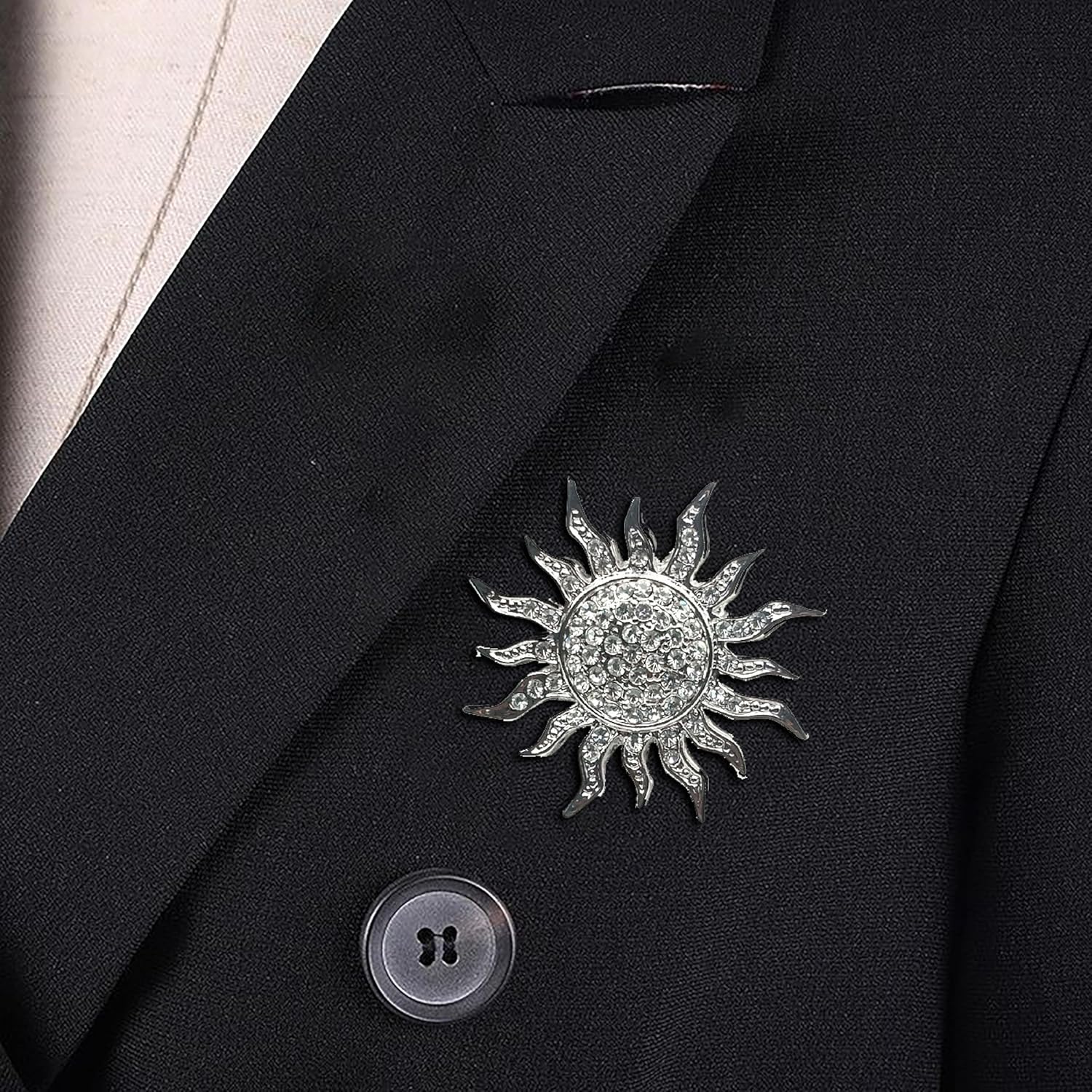 SYGA Men’s Suit Chest Brooch Fashionable Rhinestone Decoration Diamond Clothing Accessories(Silver)