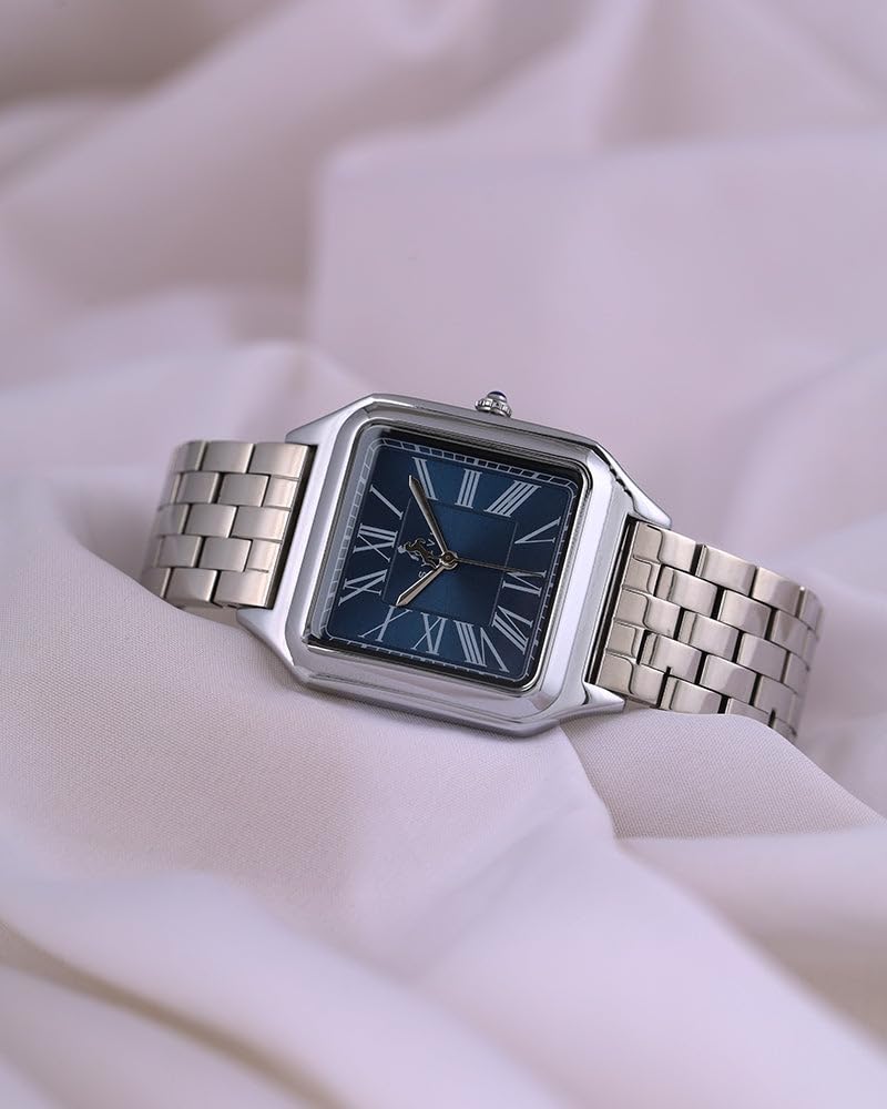 Sylvi Opus Men’s Minimal Analog Square Shape Watch, Stainless Steel Strap, Roman Numerals Quartz Movement