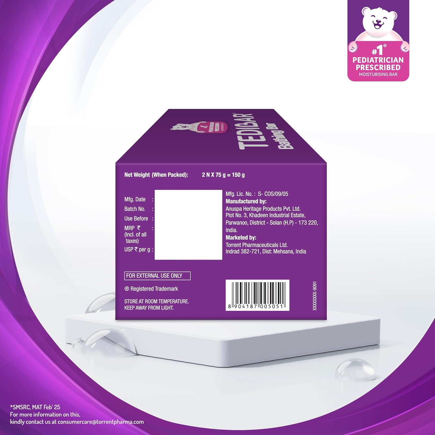 Tedibar is the No. 1 baby moisturizing bathing bar prescribed and supported by Paediatricians.Tedibar being soap-free and alkali-free offers the best protection for your little one’s skin. It hydrates the baby’s skin and retains moisture. Recommended to maintain baby’ skin pH and prevent skin problems like rashes and dryness.