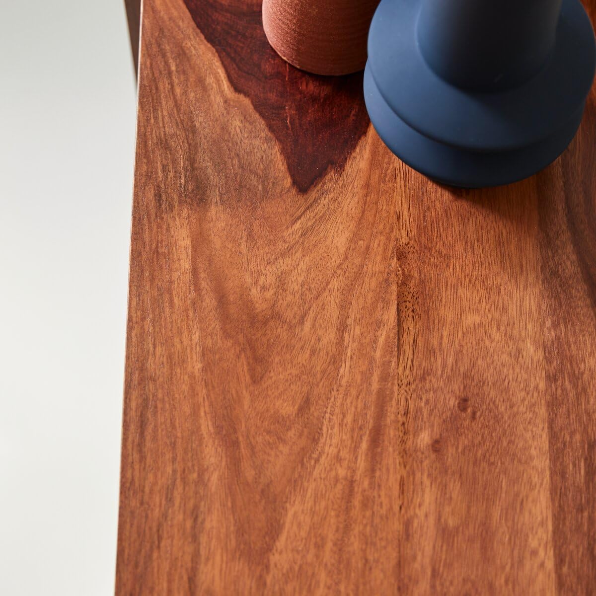 The SMAART CRAAFTS Teo Solid Wood TV Unit/Cabinet is a fusion of timeless elegance and functionality. Crafted from pure Sheesham wood, prized for its durability and distinct grain patterns, this unit exudes a natural charm. The warm Honey finish enhances the wood’s inherent beauty, making it a versatile addition to any decor. Equipped with two beautifully designed doors and a convenient shelf, this unit provides ample storage space for your media accessories, books, or cherished items. Keep your living space organized and clutter-free while having everything you need within arm’s reach. Designed to accommodate a range of TV sizes, this unit functions as both a practical TV stand and a stylish cabinet. Its versatile design allows it to seamlessly fit into living rooms and bedrooms, enhancing the aesthetics of any space. AUM INC. is the leading manufacturing and export houses from Jodhpur, Rajasthan, India which employs over 300 skilled and semi skilled artisans who create and deliver outstanding products on a daily basis. With a vision to become the ultimate powerhouse of this Industry, we have been exporting to more than 12 countries and growing on year to year basis. the success mantra of our substantial growth is very simple “DISCIPLINE”. We respect following some discplines for each and very product and each and every buyer : 1. Material is sourced ethically along with all channel documents. Raw wood is completely treated and seasoned to make sure it is free from bugs and termite. 2. Finishing material is completely lab tested. We make sure it is Lead and Phthalate free in order to ensure customer safety. 3. Our products are packed safely following international guidelines of ISTA 3A.