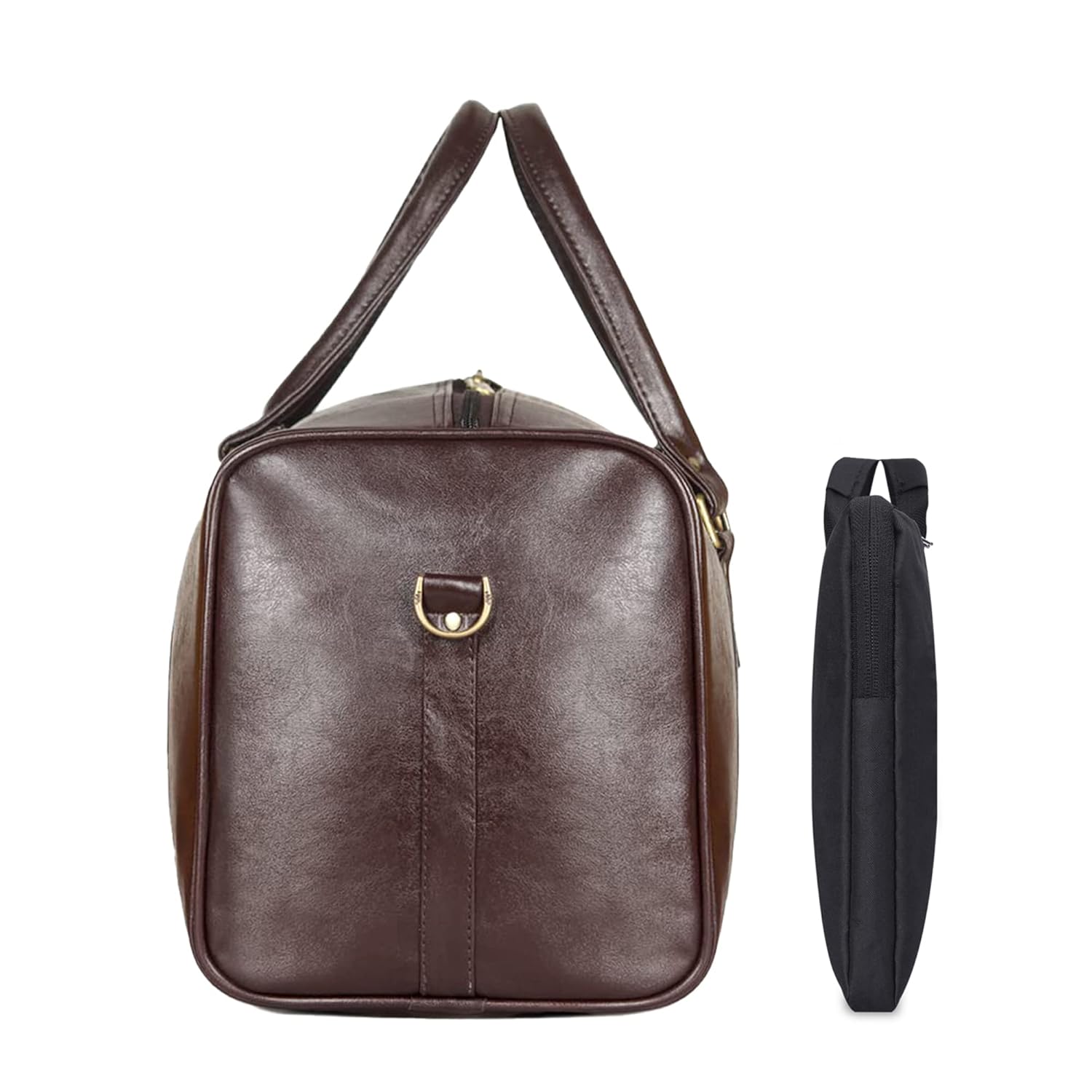 PREMIUM MATERIAL: This stylish combo of duffel bag & laptop sleeve is an ideal combo for a short business trip. Duffle bag is made of water resistant Vegan Leather material. For the inner lining we use soft feel polyester fabric. The slim Laptop Sleeve /Tablet bag is efficiently designed in premium Polyester.