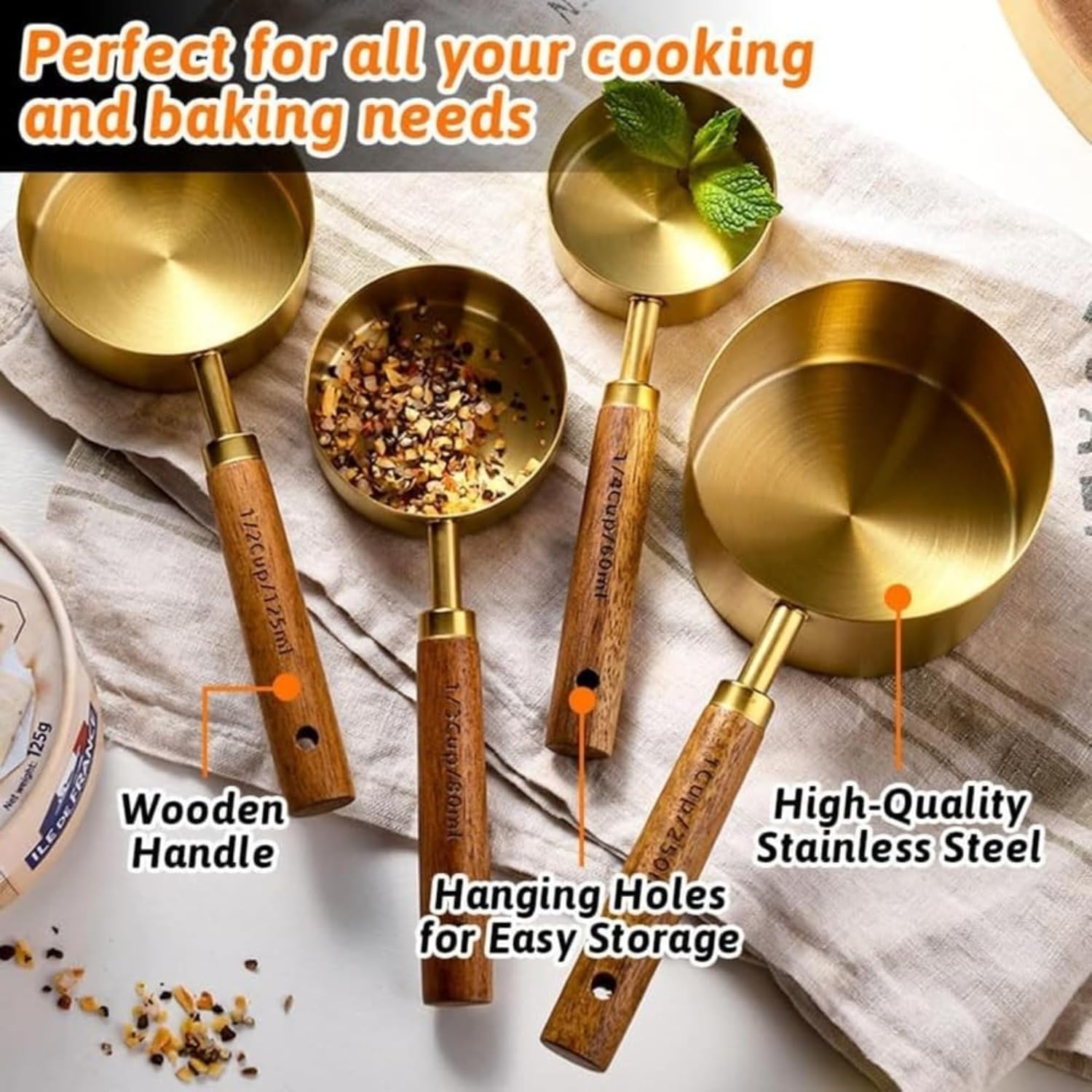 【Elegant golden】Elegant golden measuring cups and spoons Suitable for many occasions like restaurant, home kitchen, dinner party. The This golden measuring spoon is also great for photos and as a gift.