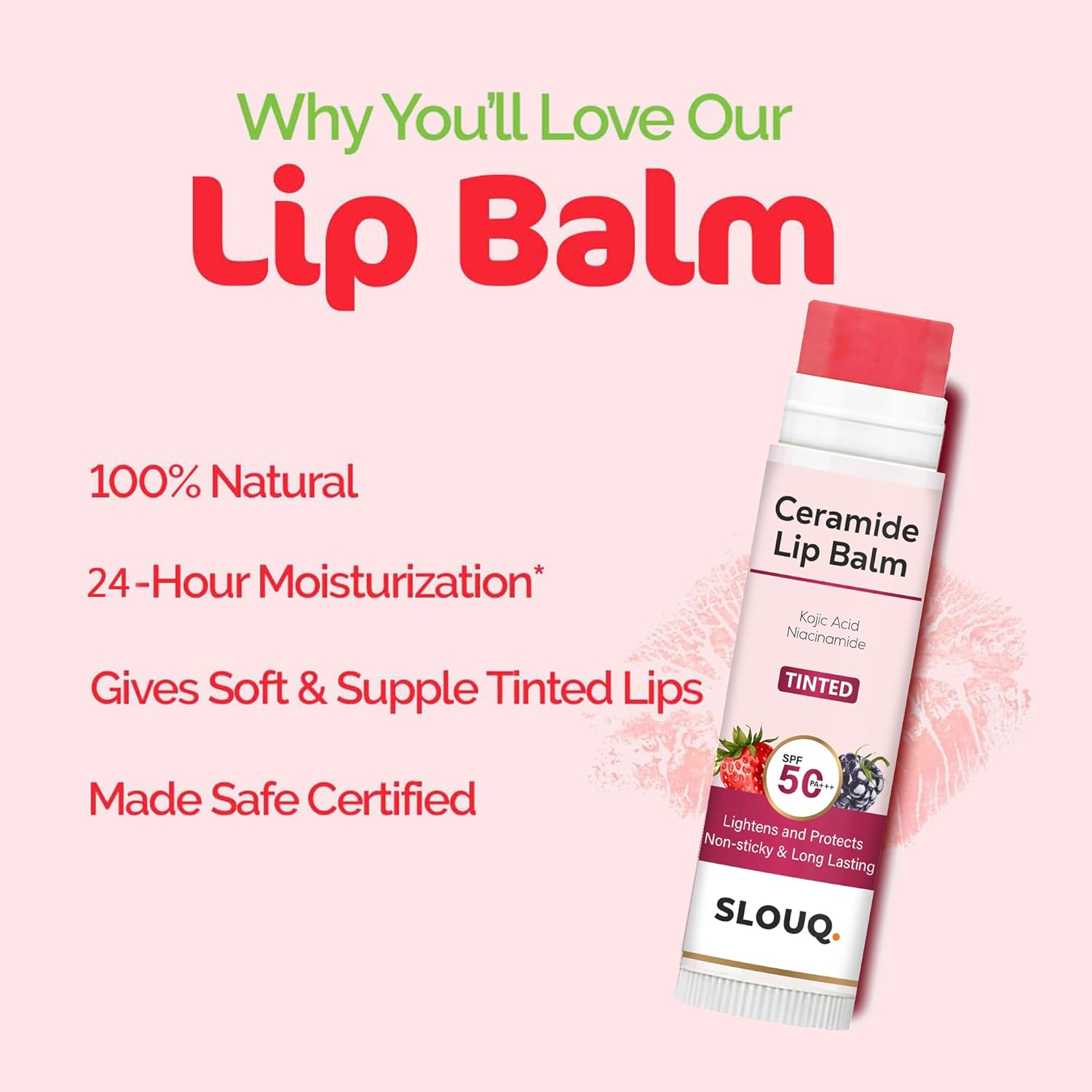 ✅ SPF 50, PA+++ WITH CERAMIDE PROTECTION: The SLOUQ Tinted Ceramide Lip Balm offers superior broad-spectrum SPF 50 protection, effectively shielding your lips from damaging UVA and UVB rays. Enriched with ceramides, it locks in moisture, ensuring your lips remain healthy and hydrated.