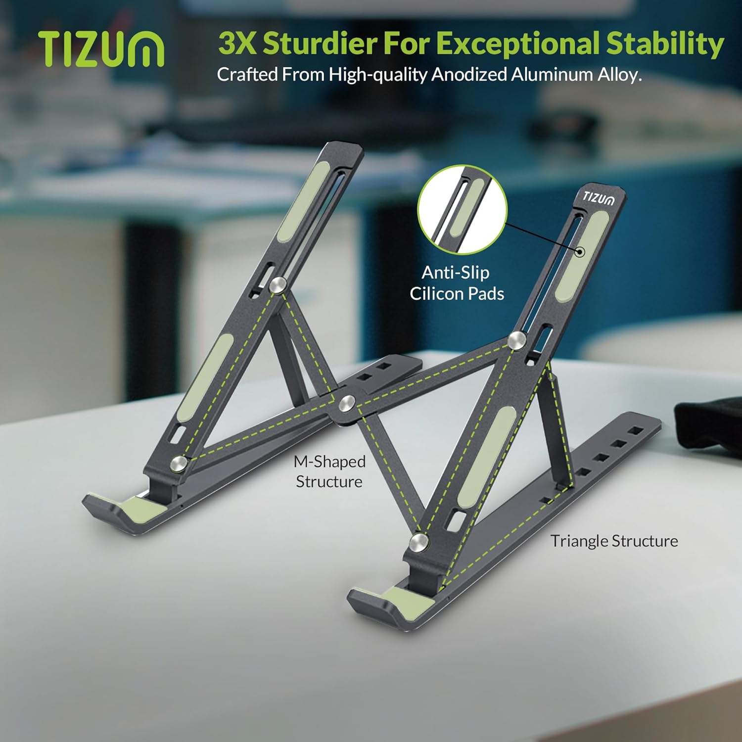 Anti Slip Silicone Pads: Prevents device movement and surface scratches. Large non-slip pads keep your laptop, MacBook, Ipad or tablet steady on any surface. Protects both your device and desktop from unwanted slips and scuffs