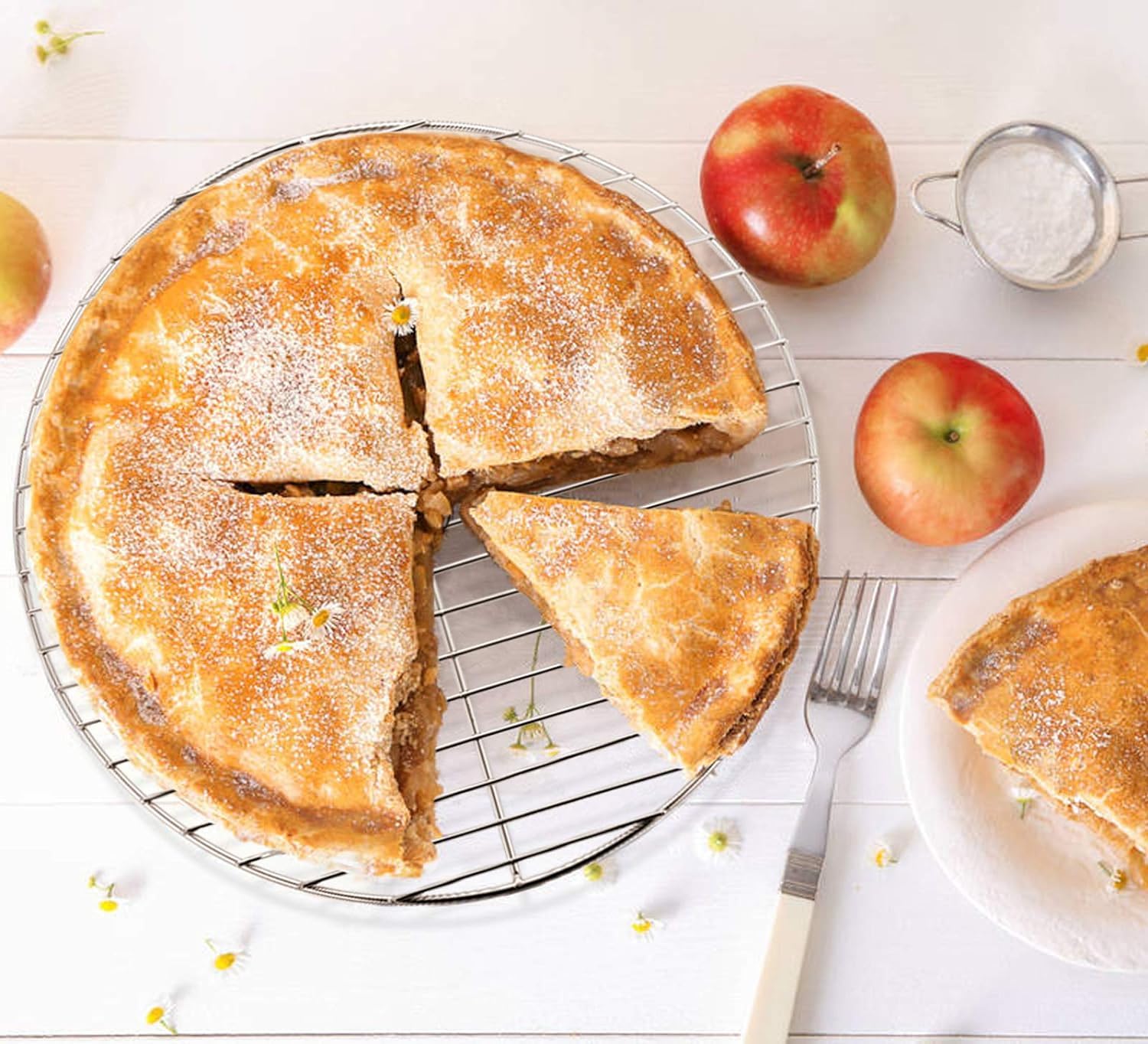 EXQUISITE CRAFT – Round wire rack has 4 raised feet and dense weld design, stably holding the food, Prevent food falling through, spaced wire provide better airflow for baking or steaming and faster cooling.