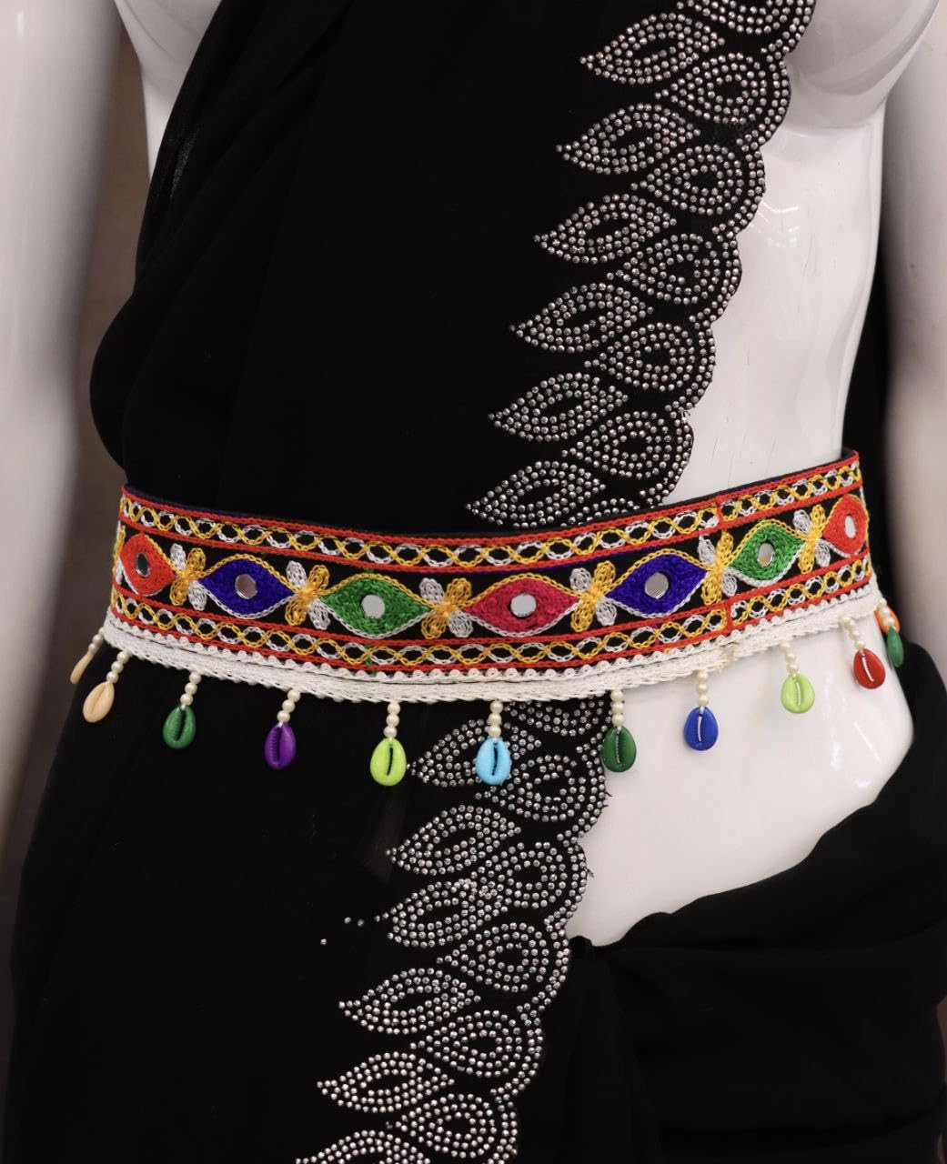 Enhance your ethnic look with this beautifully handmade embroidered kamarbandh waist belt. Designed with intricate multicolor embroidery, colorful beads, and stylish tassels, this waist belt is a perfect accessory for sarees, lehengas, and traditional outfits. Whether it’s a wedding, festival, dance performance, or party, this kamarbandh adds elegance and charm to your attire. Made with durable fabric and high-quality threads, it is lightweight, comfortable to wear, and reusable for multiple occasions.