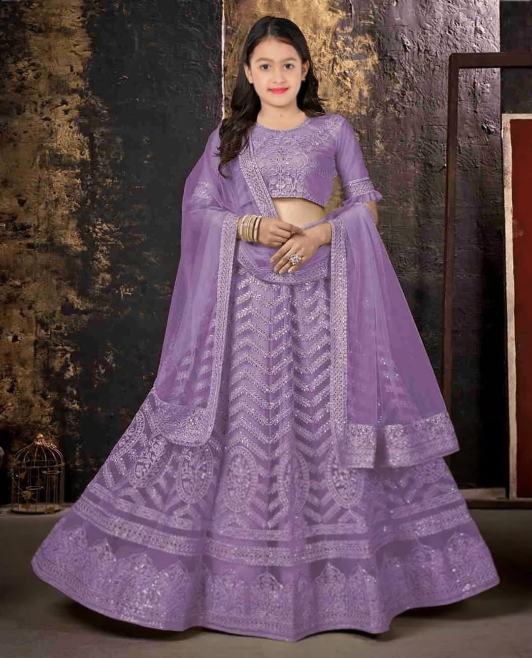 Traditional Net Embroidered semi-stiched Lehenga Choli Set,(7 T0 13 YEAR)