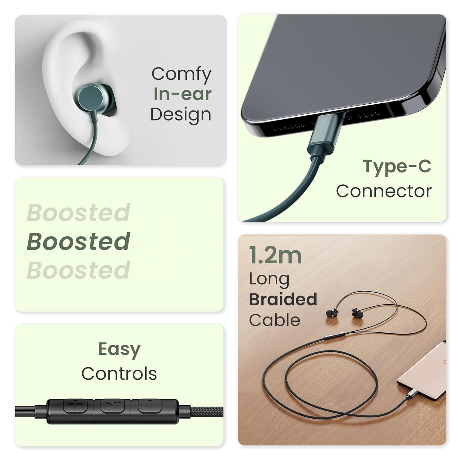 Classical earphone with excellent sound. It has in-ear soft earbuds and high performance speaker. Good for listening MP3/Music, watching DVD/movie. Compatible with portable music players with Type-C jack built-in mic Works with most Android, phones and other smartphones for crystal clear quality