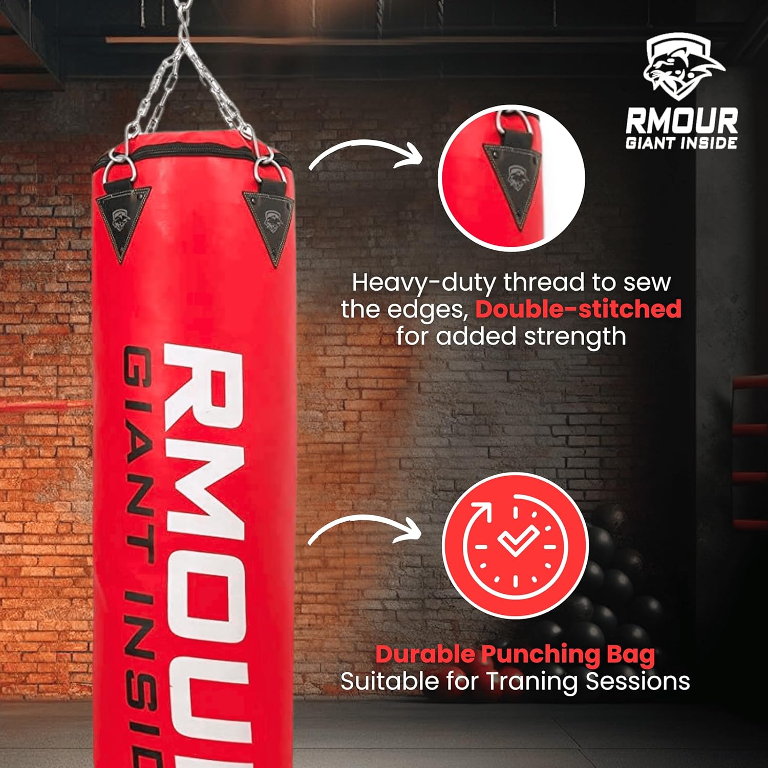 ✔ PACKAGE CONTENT: 1 Unfilled Red Heavy PU Punch Bag Boxing MMA Sparring Punching Training Kick Boxing Muay Thai with Hanging Chain