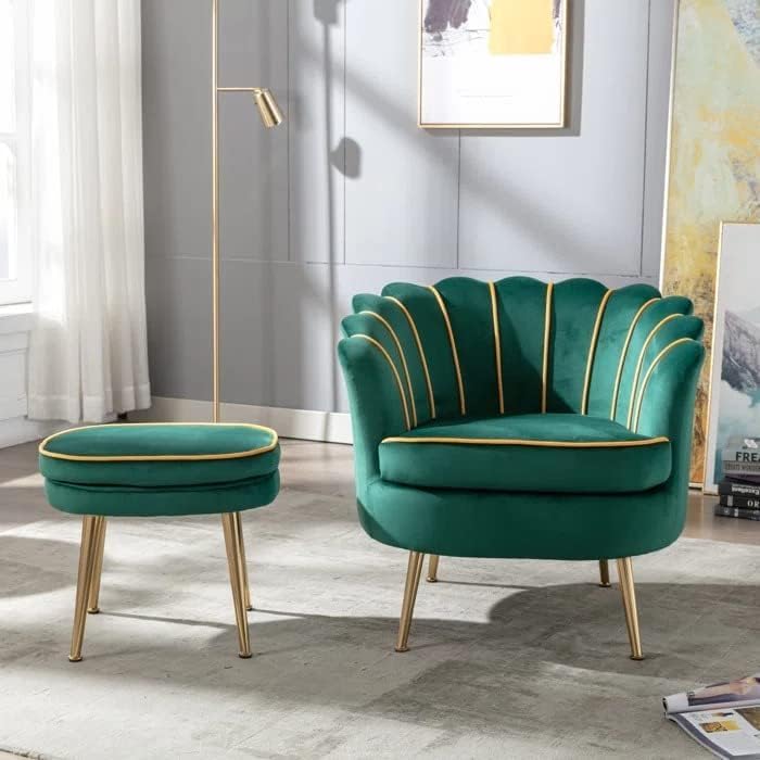 NATURE WOOD DECOR Lovely Stunning Occasional Chairs with Footstool for Living Room Bedroom Features: Reinforced Sturdy Frame: The accent chair is made of wooden construction with solid wooden leg , it is more durable and sturdy and protect floor from scratches. Also stronger construction increases the stability to keep a high weight capacity Soft Fabric Chair: The occasional chair is covered with soft fabric which is skin-friendly and delicate. The high-density foam filling seat and wing back can offer better comfortable and eliminate the pressure when sitting down. Stunning Design: These color of tub chair and Beige color, available, you could choose lovely chair to decorate your home or office, it is looks more stylish and stunning at your room. Simple Assembly: The armchair with footstool provides with all assembly parts in package, the leisure chair can be installed in a short time. Just attach the 4 legs to the seat. living room chair, dining chair, ect Occasional Accent Chair: The armchair with footrest is ideal for corner sofa, living room, bedroom and dining room, reading chair. Also it is good for reception office lobby and waiting room. Specifications: Material: Velvet Filling:32D Foam Legs: Wood Style: Retro / Modern Arm Rest: Yes High Back.