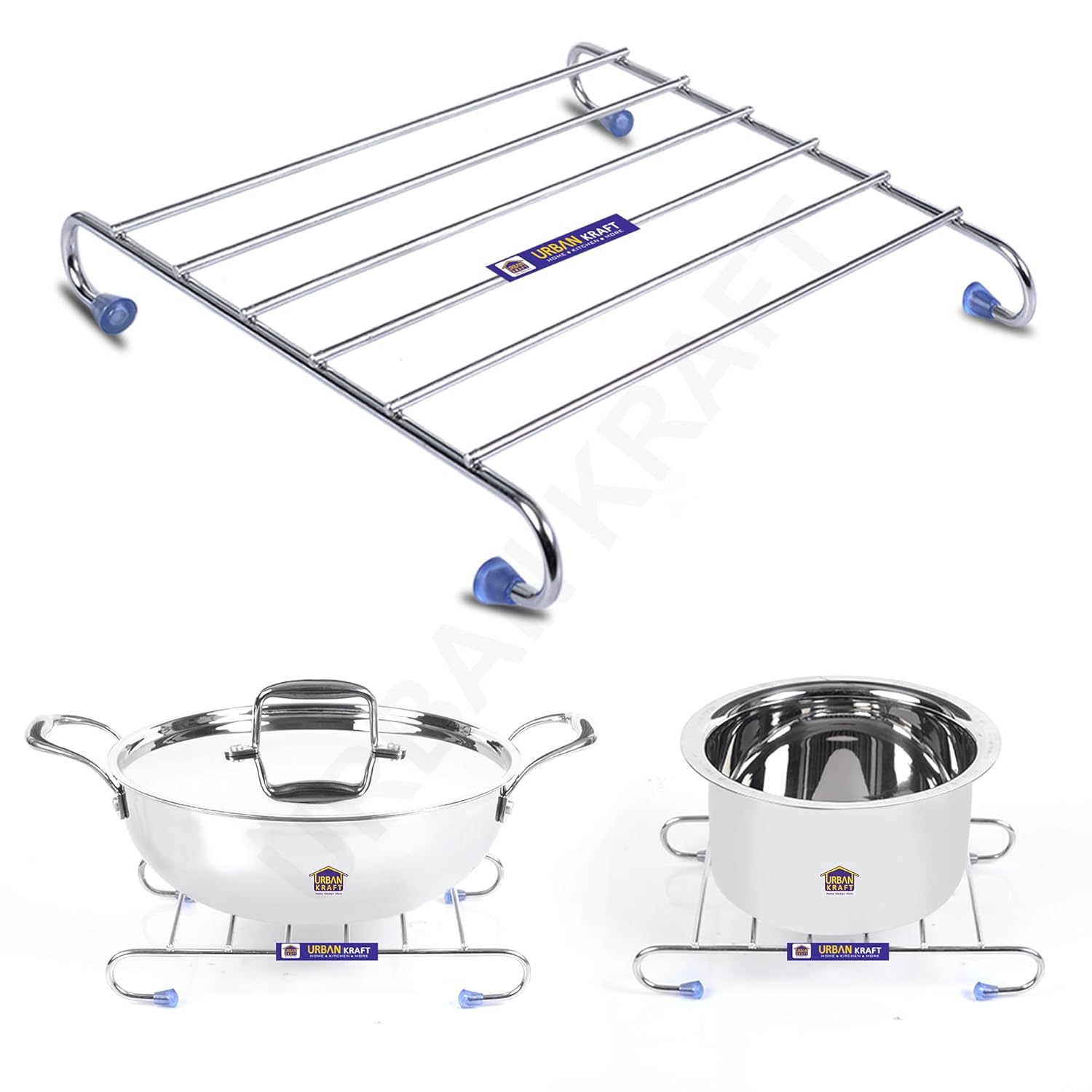 URBAN KRAFT Stainless Steel Hot Pot Holder | Rectangle Trivets for Dining Table | Stand for Hot Utensils in Kitchen | Vessel Hot Pot Mat/Rack | Cooker Stand