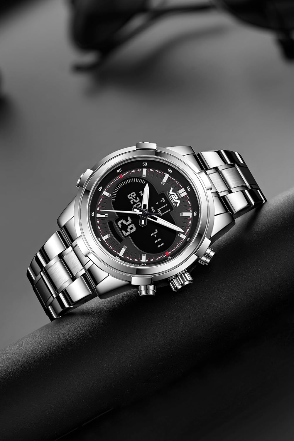 V2A Torque Series Analog-Digital Metal Watch for Men Silver Stainless Steel Band Black Dial| Chronograph| Dual Display | Waterproof|Stylish| CS-8002