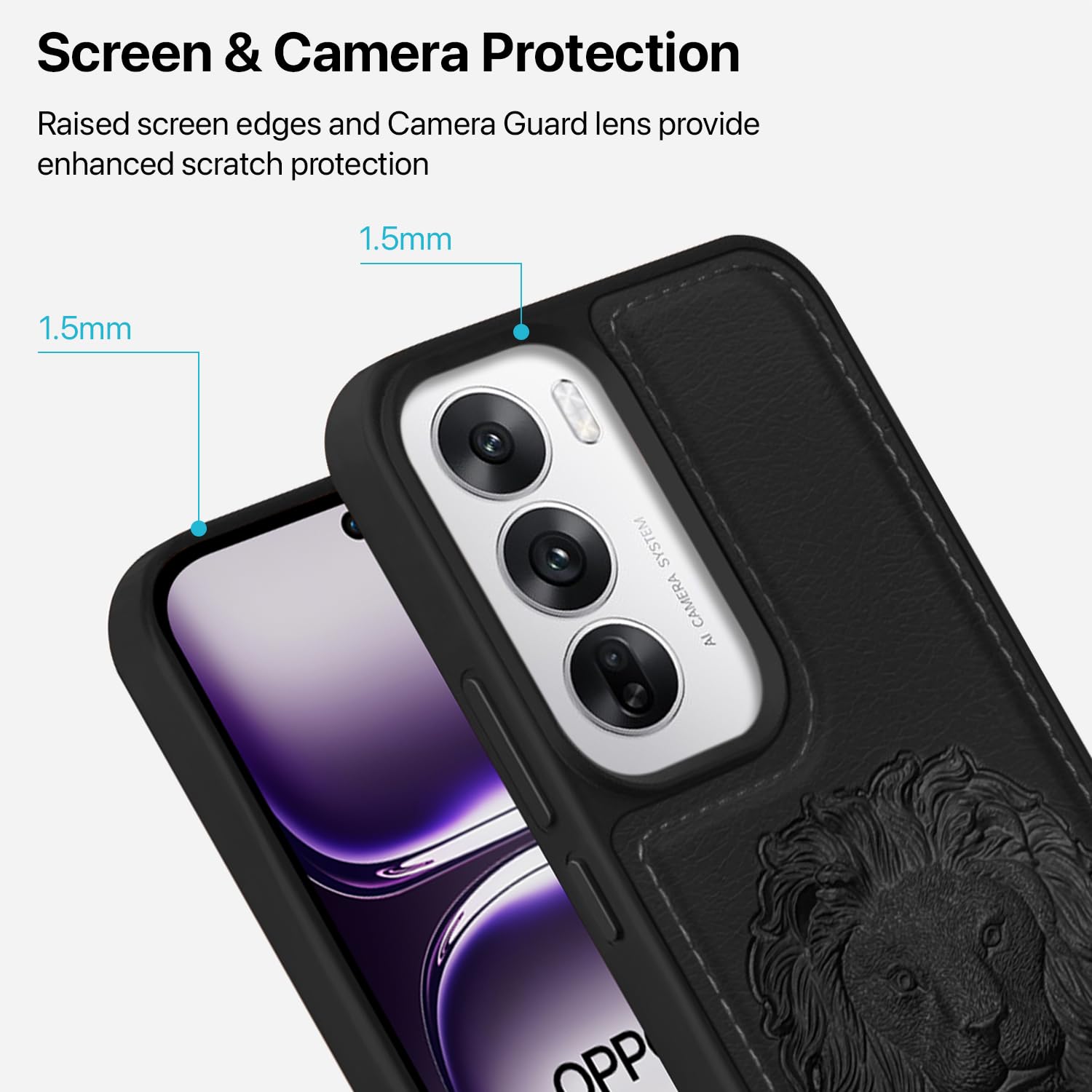 【Specially designed】Lion Embossed back cover for Oppo Reno12 Pro Leather Pattern Gold Electroplated Design. It is delicate and luxurious, and it is comfortable to hold. The fashionable designer Leather back case is perfect for Casual, Business and Party to flaunt your charisma in style ! And can also be gifted to your loved ones.