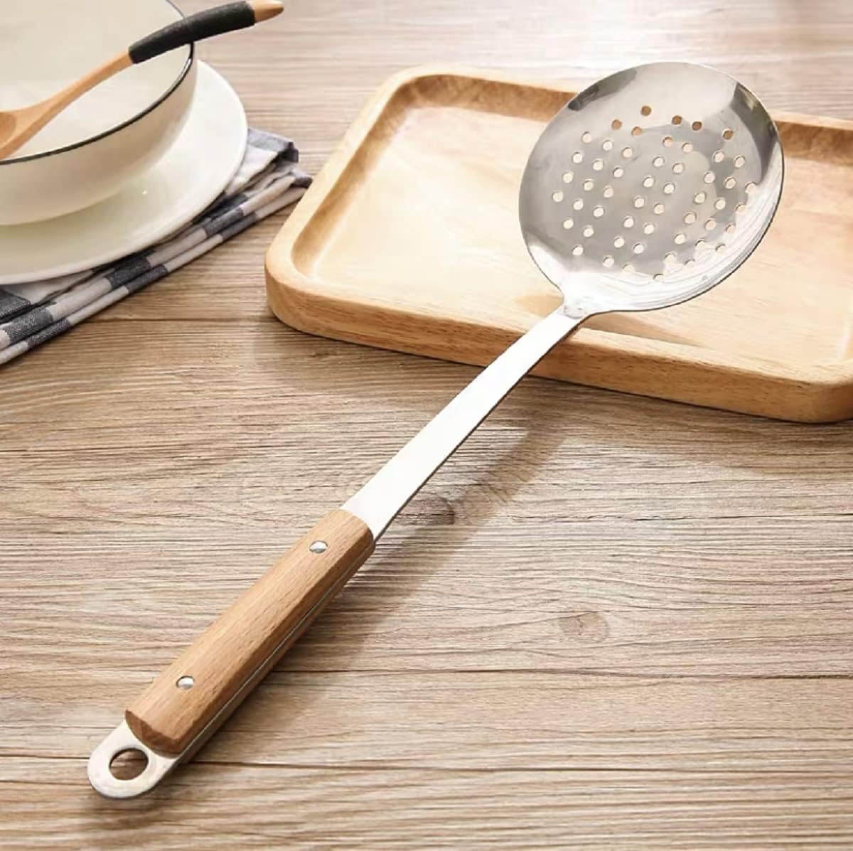 ♥Multipurpose Kitchen Tool – Use as a skimmer, oil strainer, slotted spatula, or frying spoon for various cooking needs including blanching, boiling, or removing food from broth.