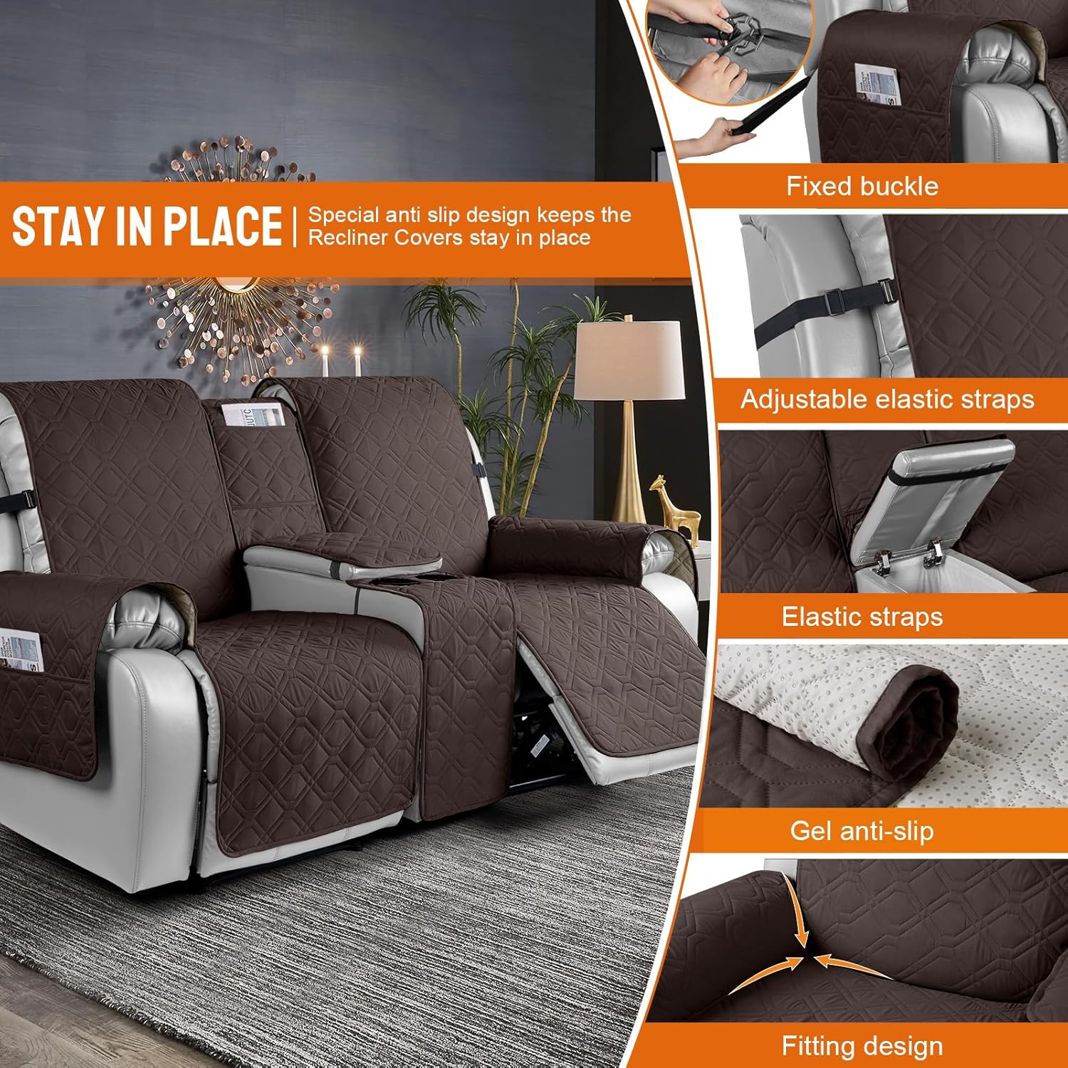 100% WATERPROOF DURABLE MATERIAL: VANSOFY loveseat recliner cover is made of 4 layers special fabric including 100% waterproof layer. Durable & strong enough for pets scratching, comfortable(No sweated) in all seasons for you and your pets