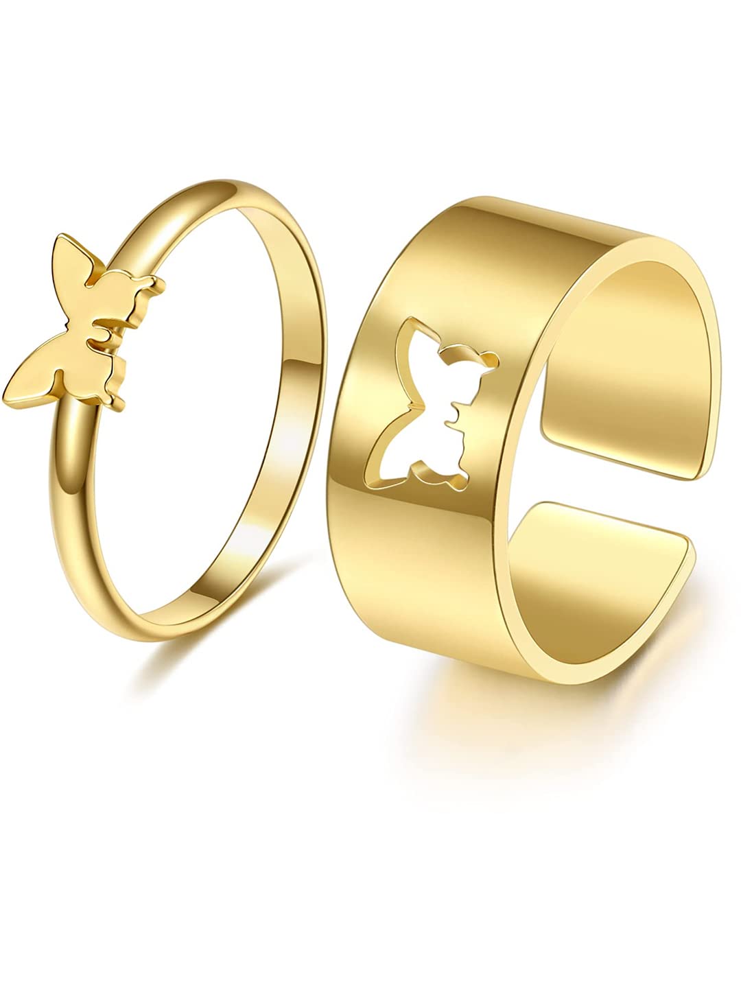 Golden Butterfly couple ring matching wrap finger ring for women and men. The Rings are Unisex. You Can Give Another Butterfly Ring to Someone You Like. These Friendship Rings are Available in Silver & Gold Color. This Ring is Ideal to Gift For Valentine, Birthday, and Anniversary Gift For Someone You Love.