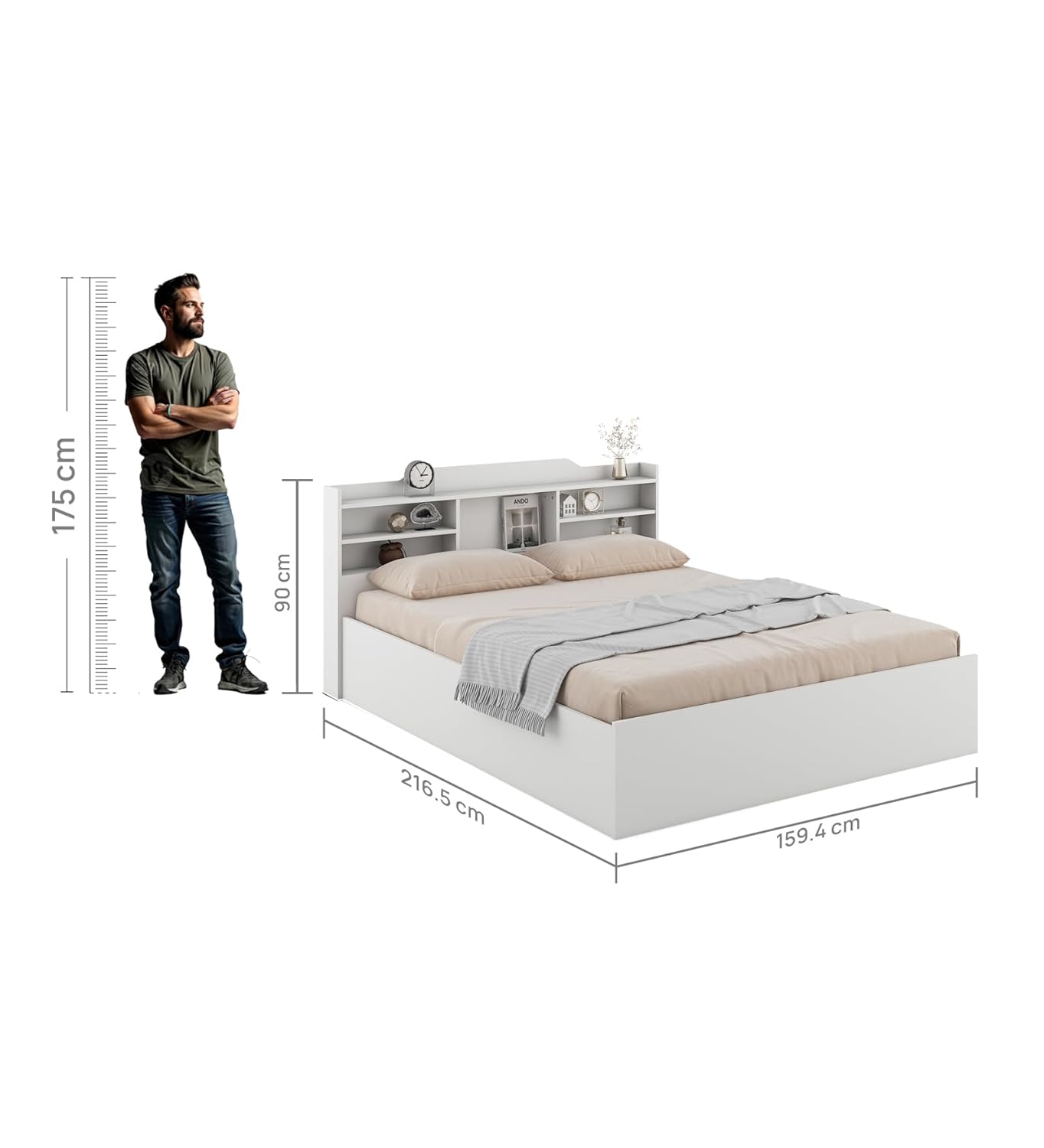 SMART HEADBOARD STORAGE – Built-in open shelves for books, alarm clocks, decor, and daily essentials.