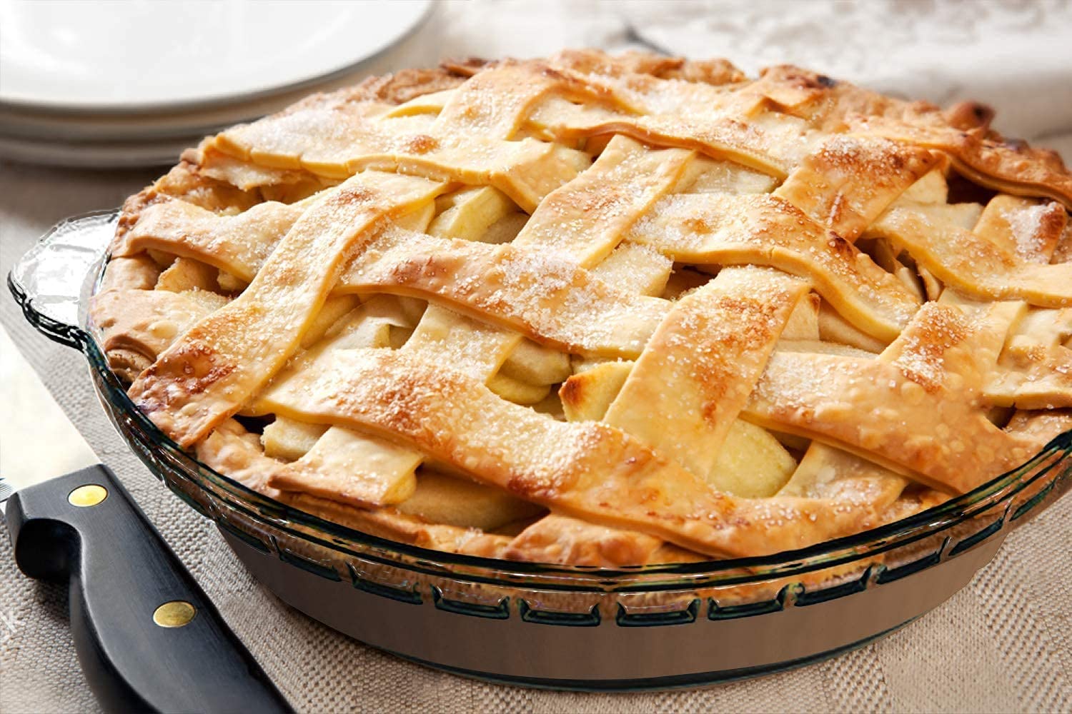Glass pie plate is made from tempered glass, offers even heating than metal. Non-porous surface does not absorb food odors, flavors or stains. The non-stick interior with classic fishbone pattern adds a special touch of elegance and vitality to your pie.