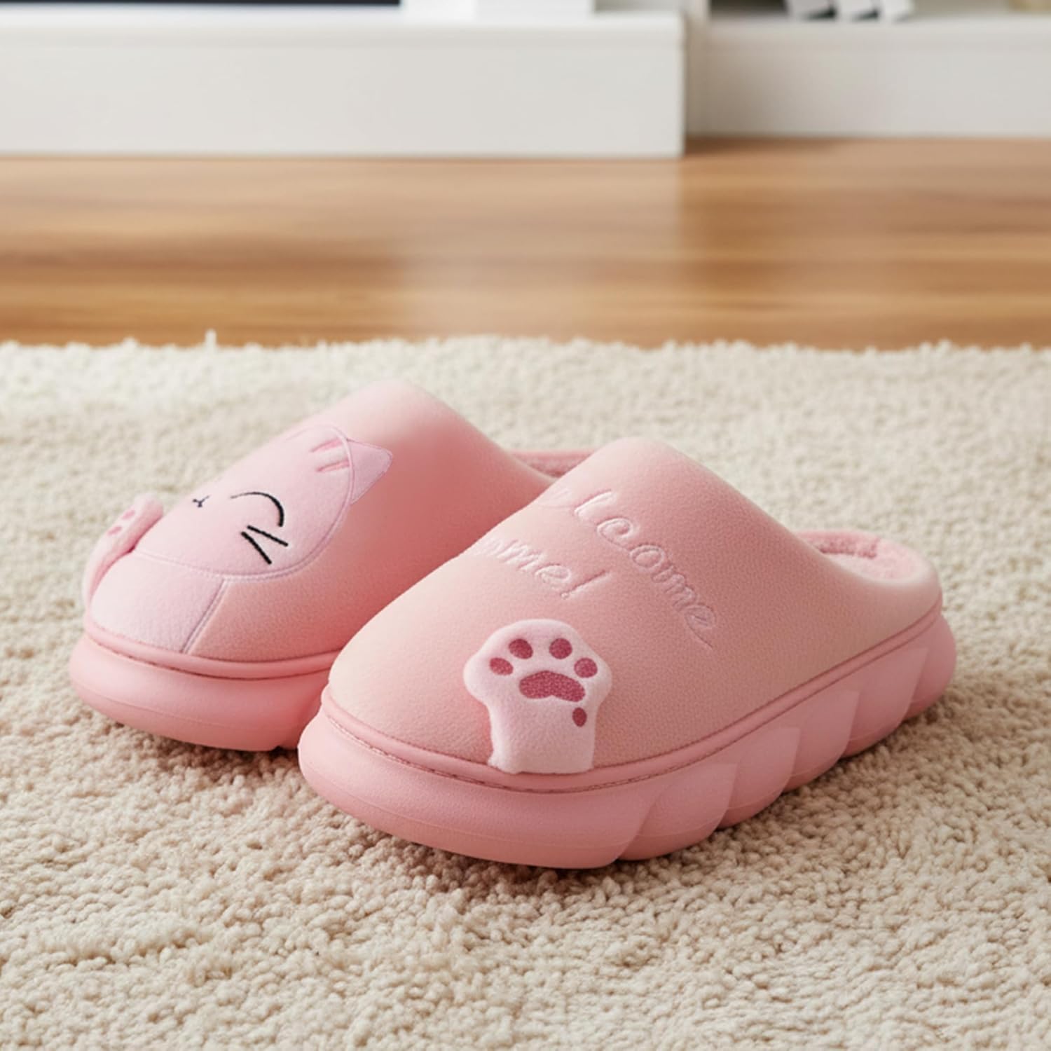 Kick off your high-heel shoes and put on this cute soft house slippers. The slippers for women with easy slip-on design, the lining on high-quality and comfort fluffy plush fleece women’s slippers to encompasses your feet very well and offers soothing comfort