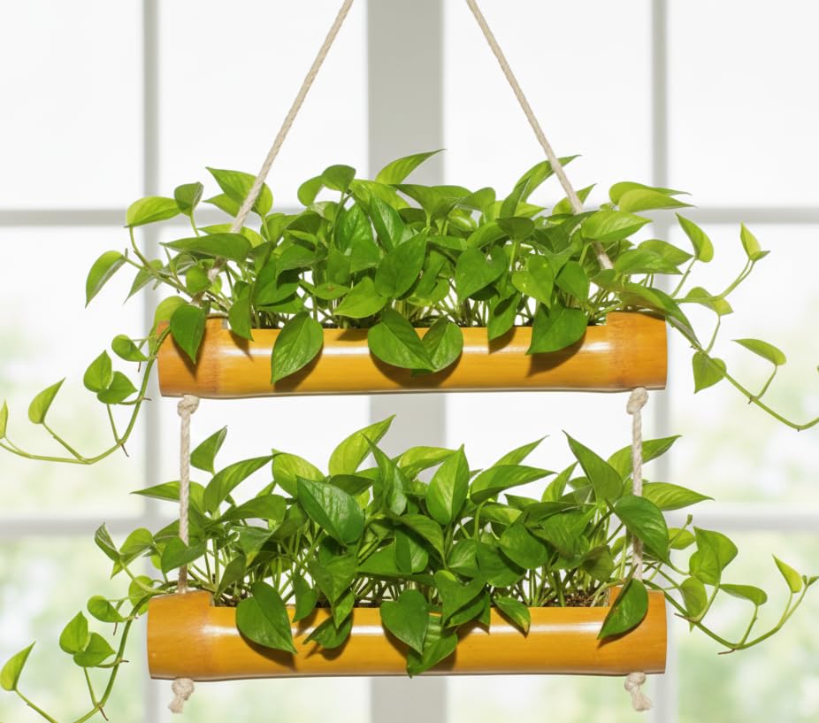 Wall Hanging pots for Plants, Natural Bamboo Planter. Hanging pots for Plants Indoor, Hanging pots for Plant (2 Step Planter, Medium)